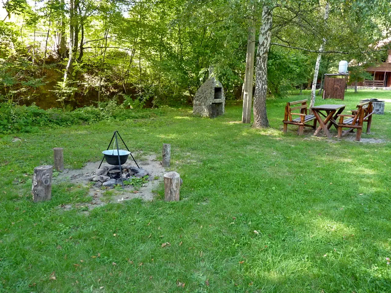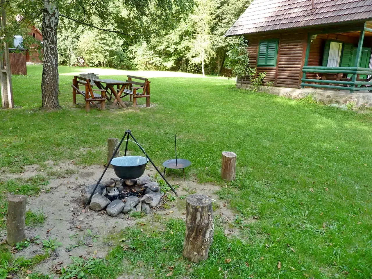 - În curte se află un cuptor pentru fripturi, un foc deschis, un ceaun și o plită pentru prepararea mâncărurilor tradiționale secuiești în aer liber.