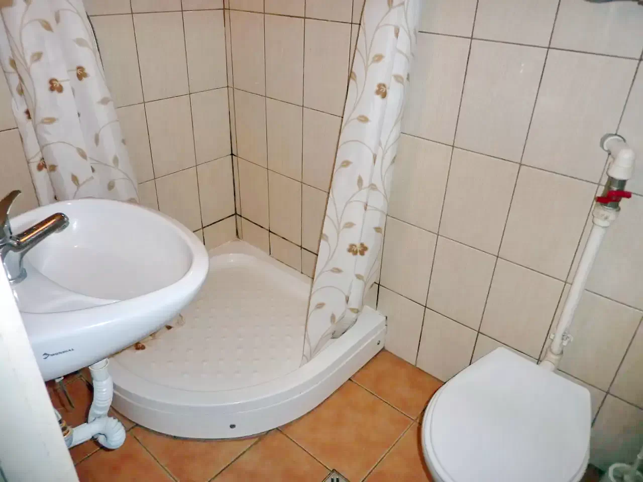 - Baie cu duș, WC cu rezervor și lavoar