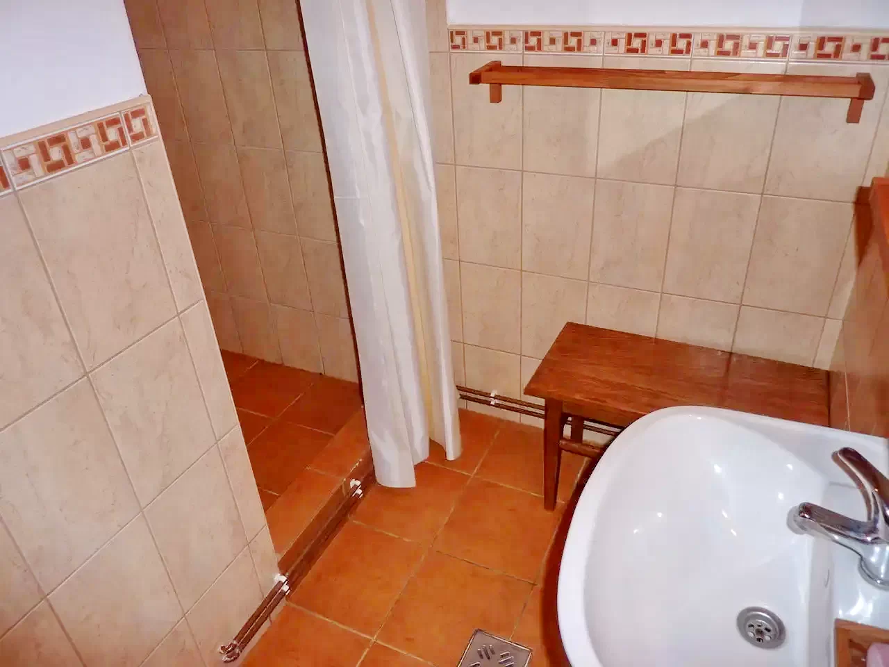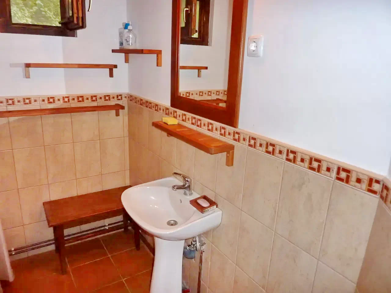 - La parter se află un living-sufragerie spațios, o bucătărie complet utilată și o baie cu duș (dotată cu toaletă și chiuvetă).