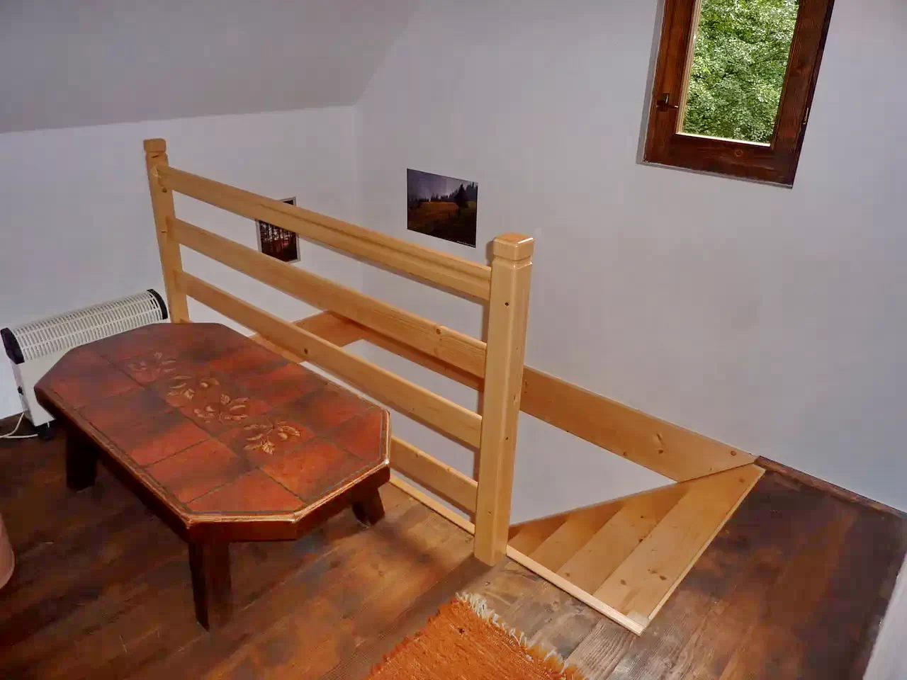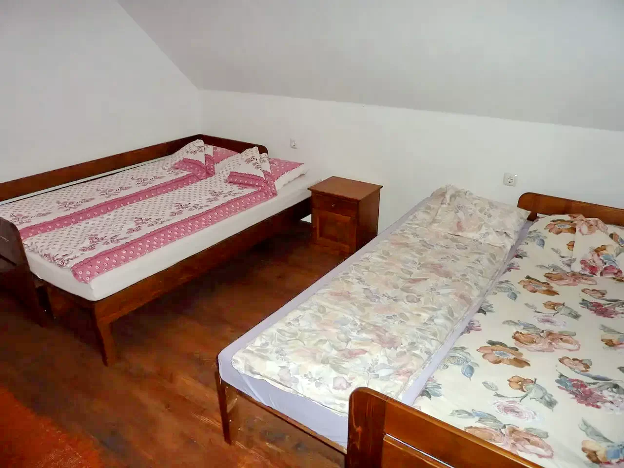 - La etaj, oaspeții sunt întâmpinați de trei camere: două camere cu câte două paturi matrimoniale, iar a treia cu un pat dublu, astfel capacitatea totală este de 8 (+2) persoane.