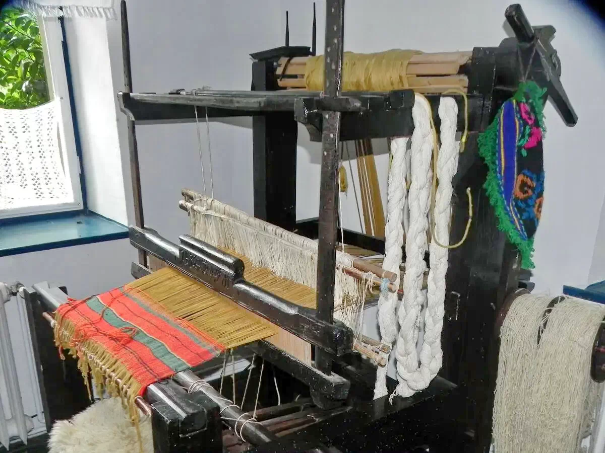 - hol intrare amenajat rustic cu un mic muzeu si un război de țesut