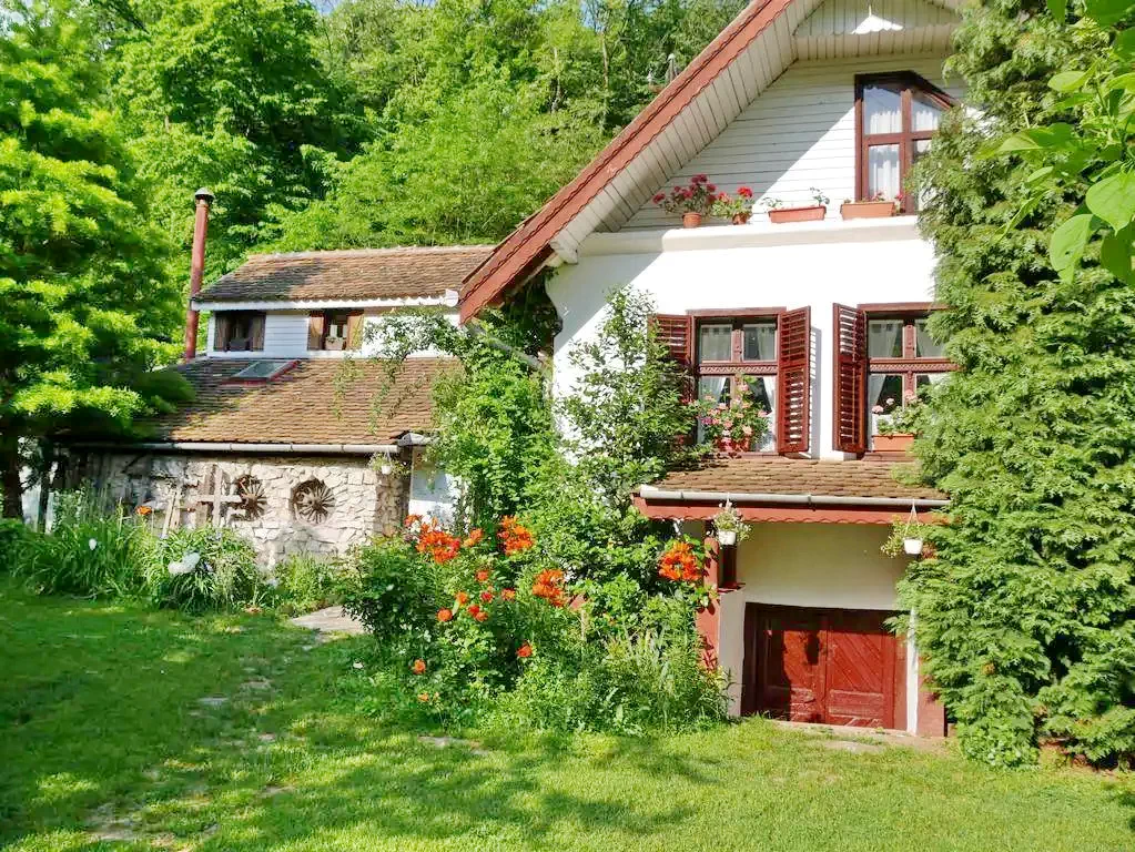 - Are un teren de 4000 mp cu livadă, loc de joacă pentru copii, 2 case separate (Casa de familii și Casa de Lemn), parcare și grătar.