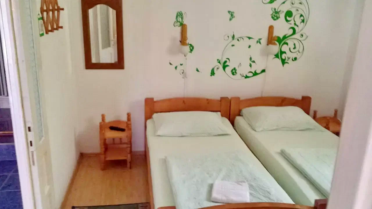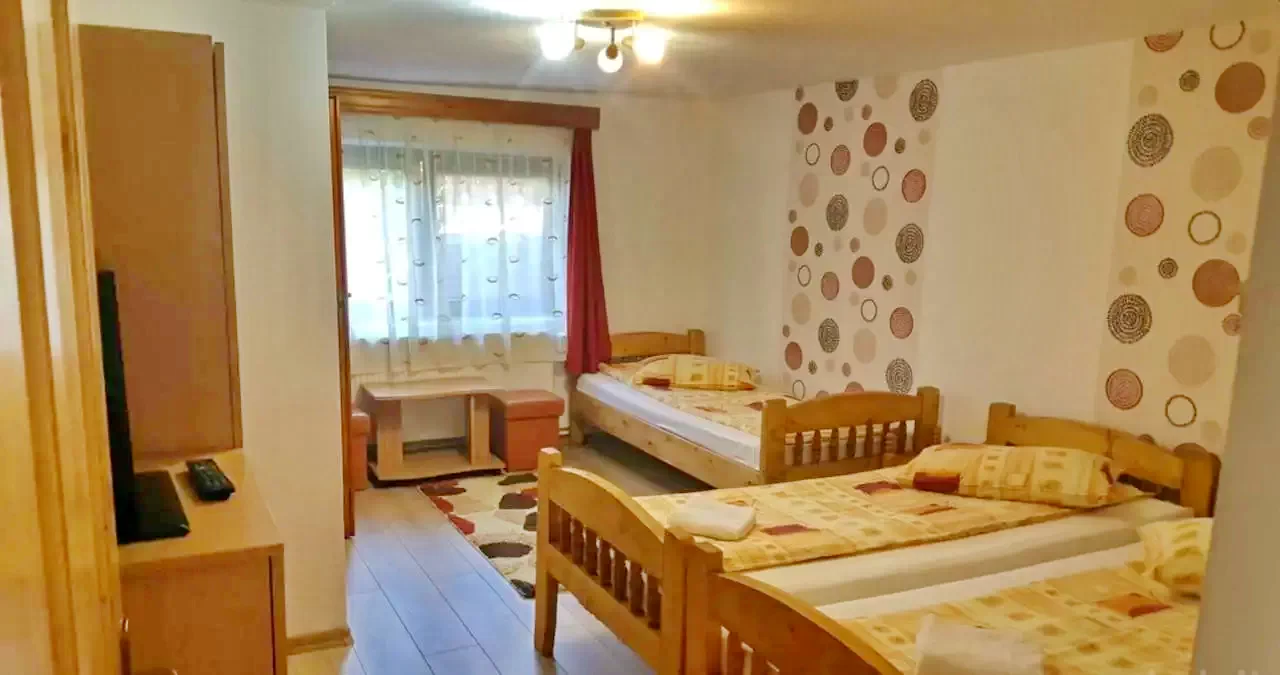 - 1 camere cu 2 paturi matrimoniale, una mai lata, cealalta mai ingusta, baie proprie