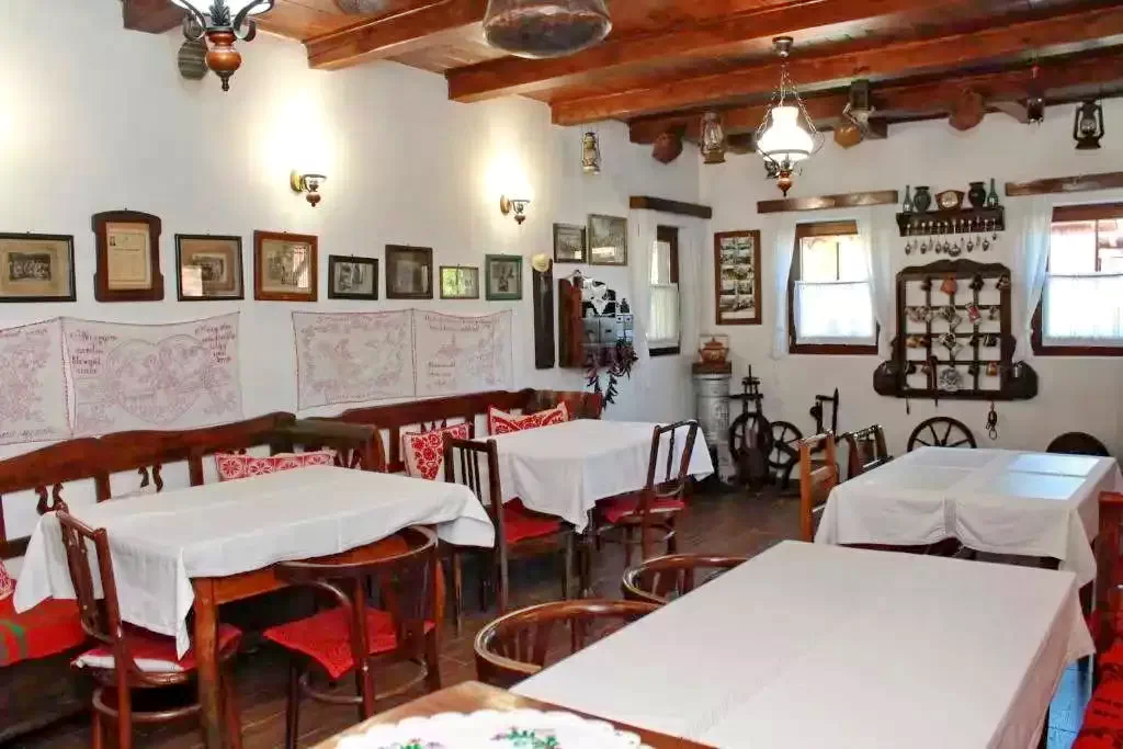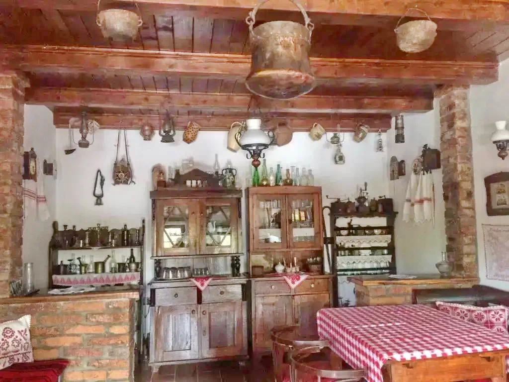 Are o bucătărie utilată și o sufragerie rustică confortabilă, spațioasă, pentru 12-14 de persoane