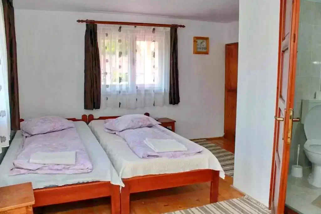 Pensiunea oferă cazare excelentă pentru 14 persoane în 2 clădiri separate, situate într-o curte.