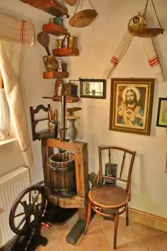 Pensiunea oferă condiții excelente de cazare pentru 12 + 2 persoane, în două clădiri separate, dar situate în aceeași curte.Prima clădire, denumită Casa tradițională, este dotată cu încălzire centrală. La parter se află 2 camere duble, fiecare cu baie proprie, care pot găzdui confortabil 4 persoane. Tot aici se găsește și o bucătărie.