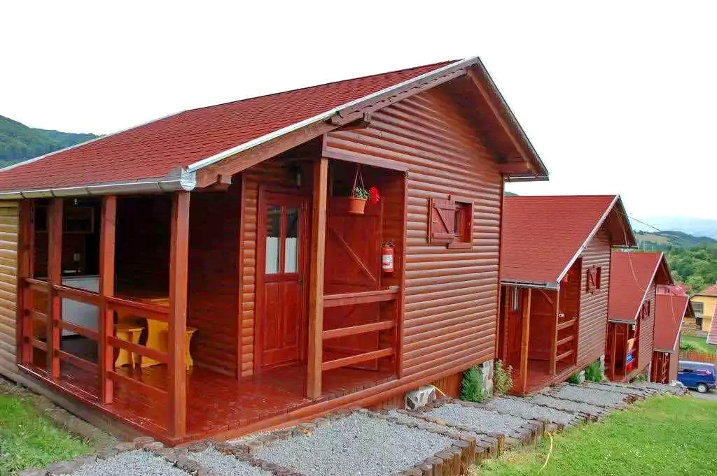 Complexul este alcatuit din noua case asemanatoare, care asigura loc de cazare pentru 36 de persoane. Fiecare casuta are o terasa mica, bucatarie, TV, frigider, 2 paturi de o persoană și o canapea cu două locuri.