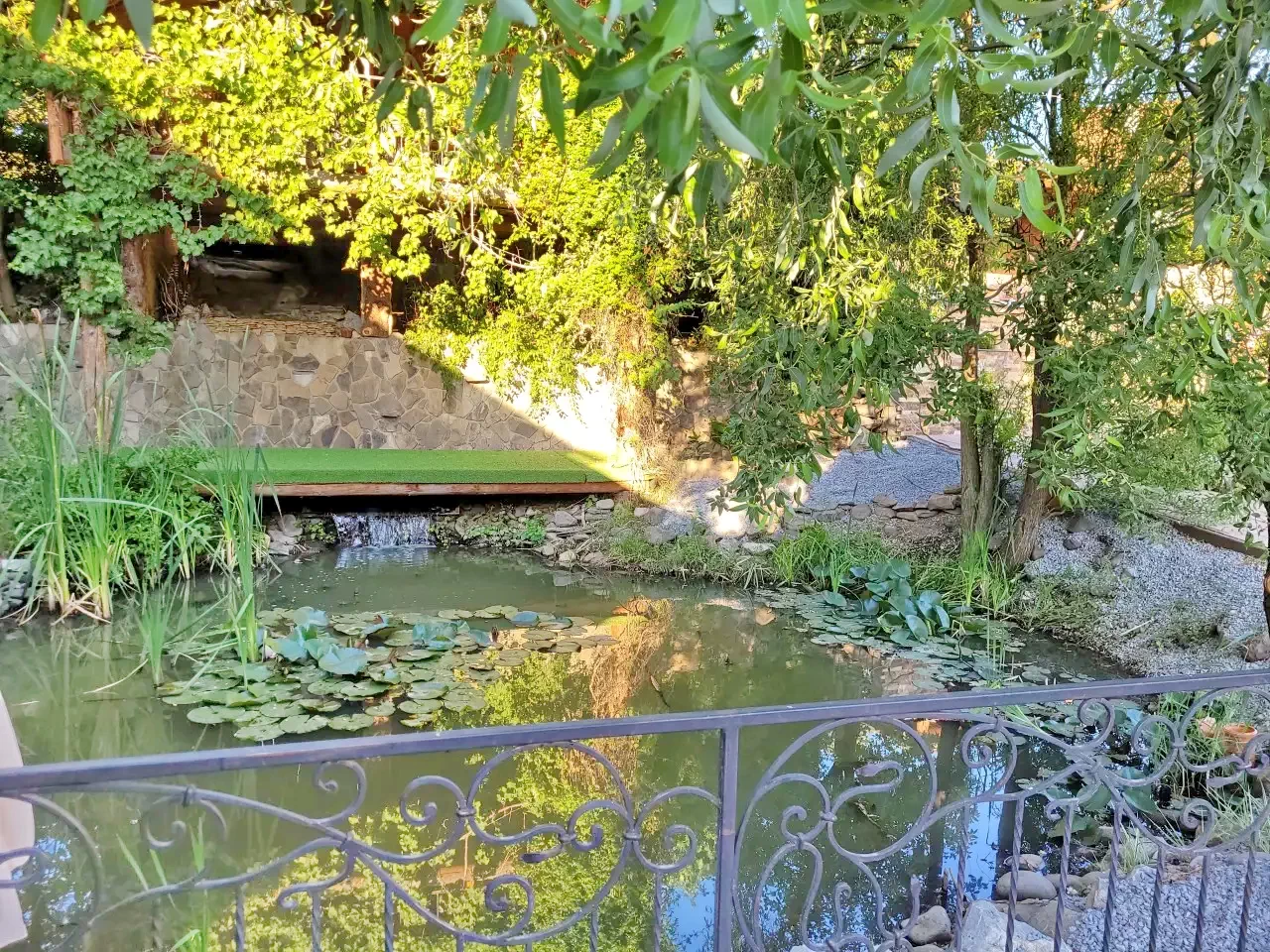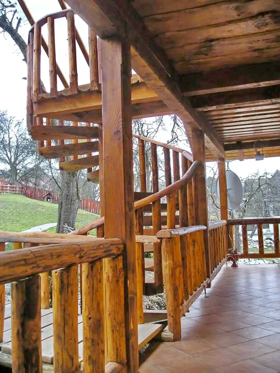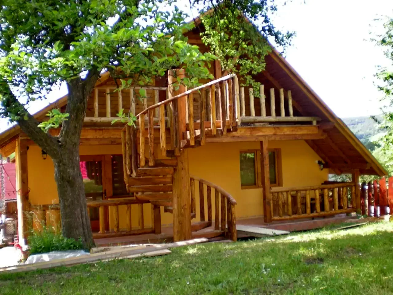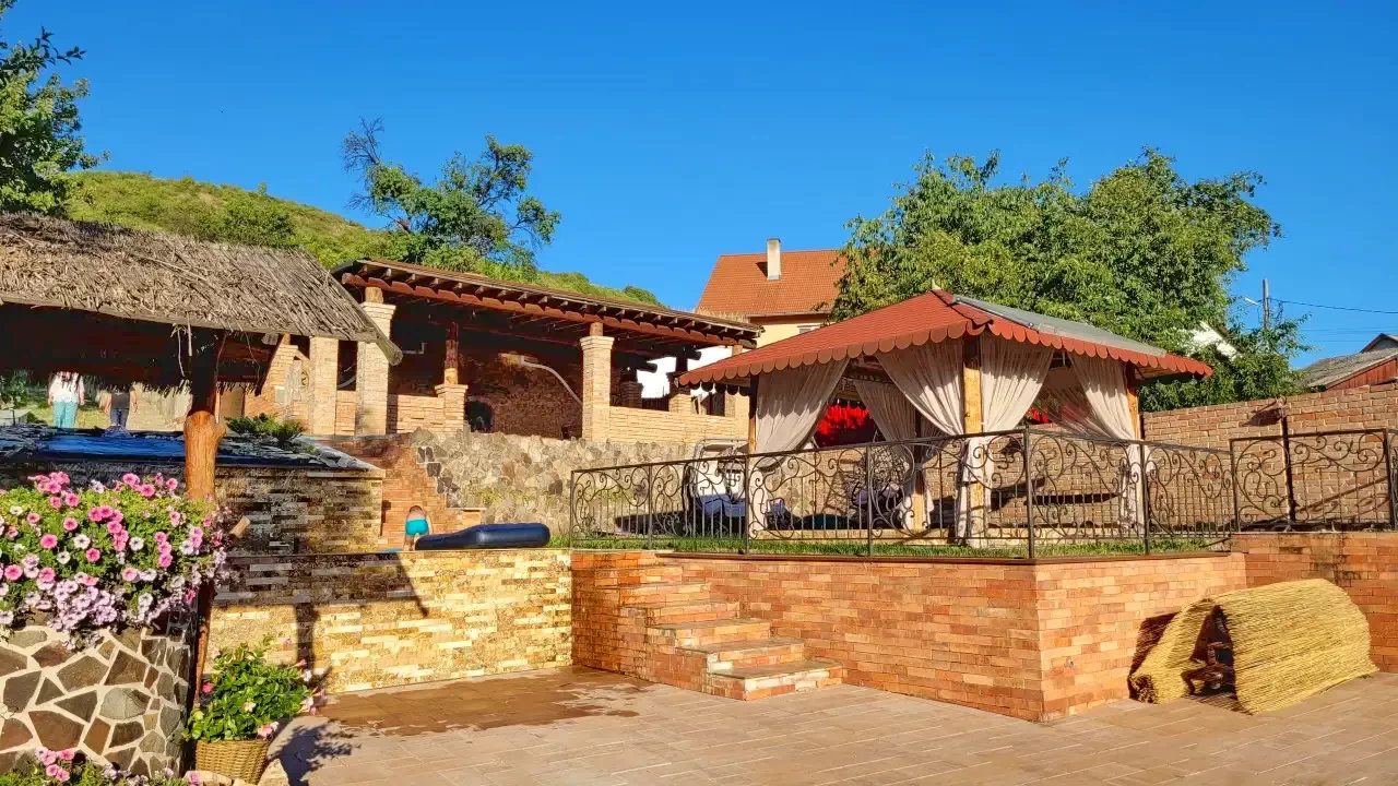 - Curtea și zona de agrement au o vedere excelentă asupra munților din jur și a așezării.
