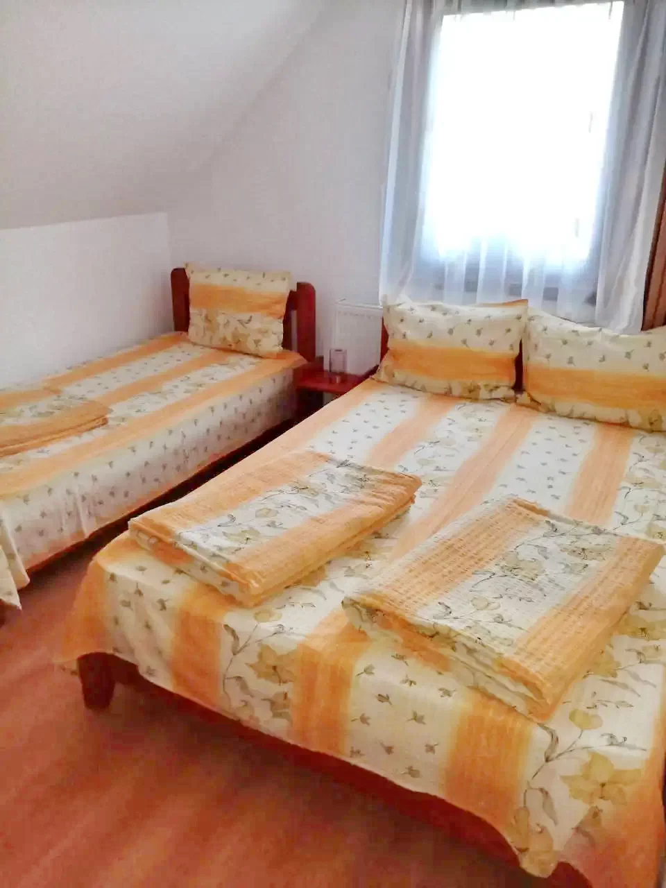 - Pensiunea are 5 garsoniere. Fiecare camera este dotata cu doua paturi, un pat matrimonial si un pat de o persoana, garsoniera are un pat matrimonial 18Ox200cm.