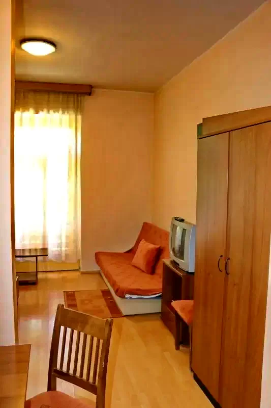 - Apartamentele și camerele studio au o chicinetă complet utilată, TV prin cablu și o baie.