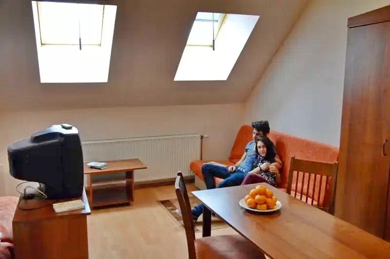 - Sunt camere foarte spațioase. Au mini bucătărie complet utilată, si baie proprie cu cabină de duș.