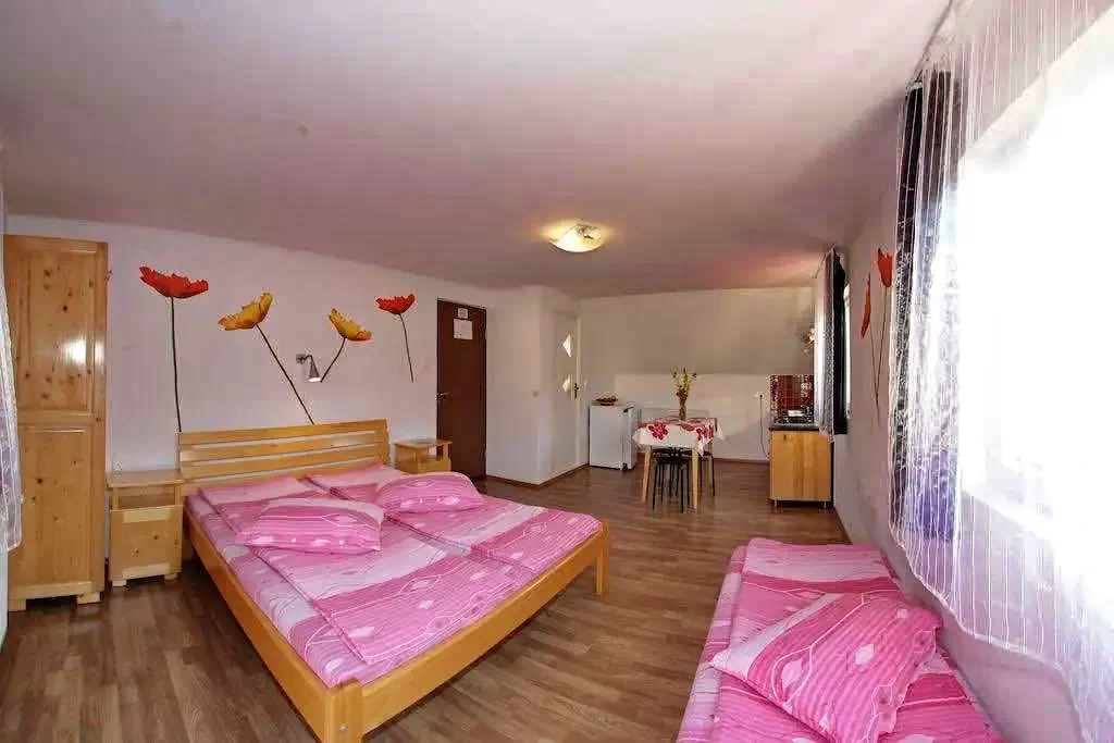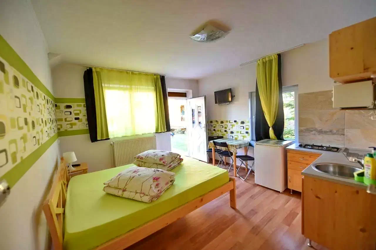 - Apartament studio: 1 apartament de 2 persoane (cameră cu pat dublu, baie, bucătărie)