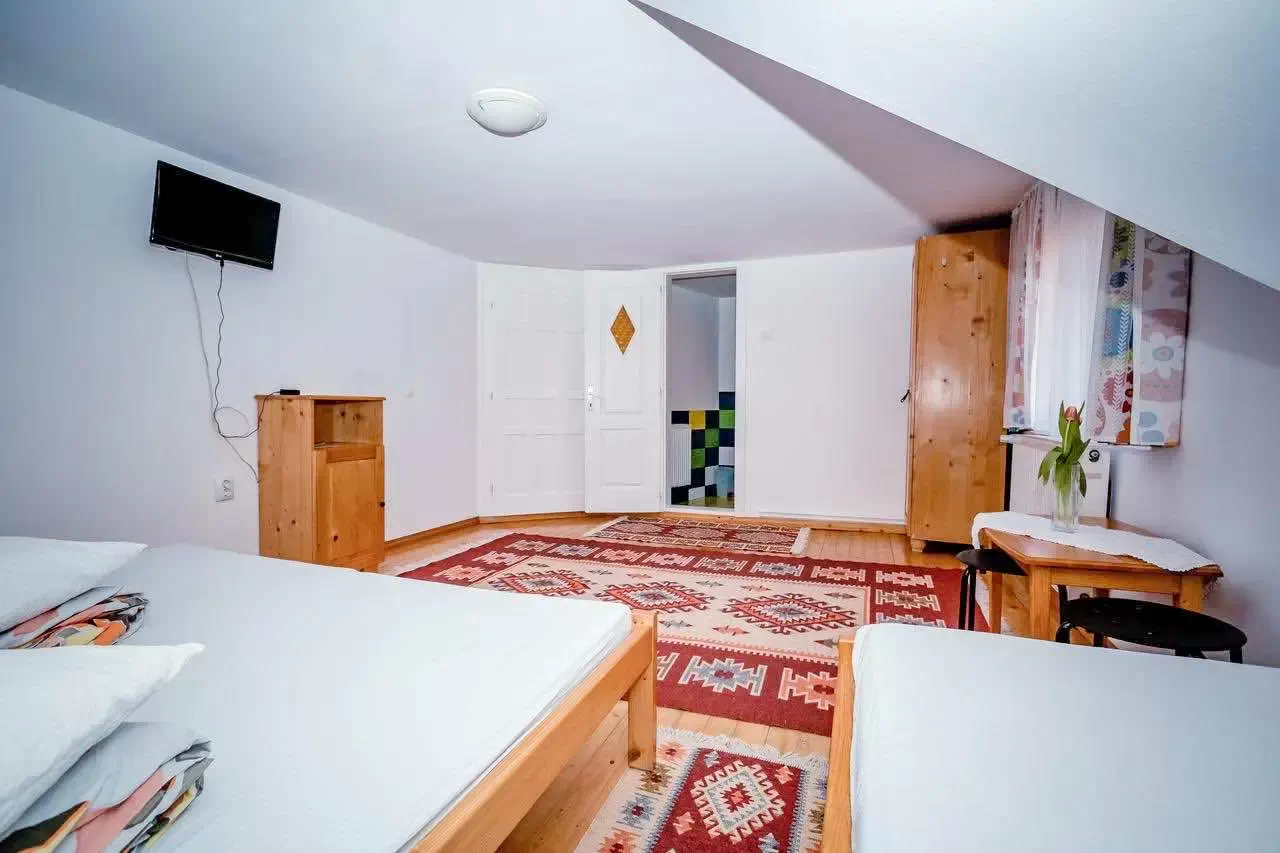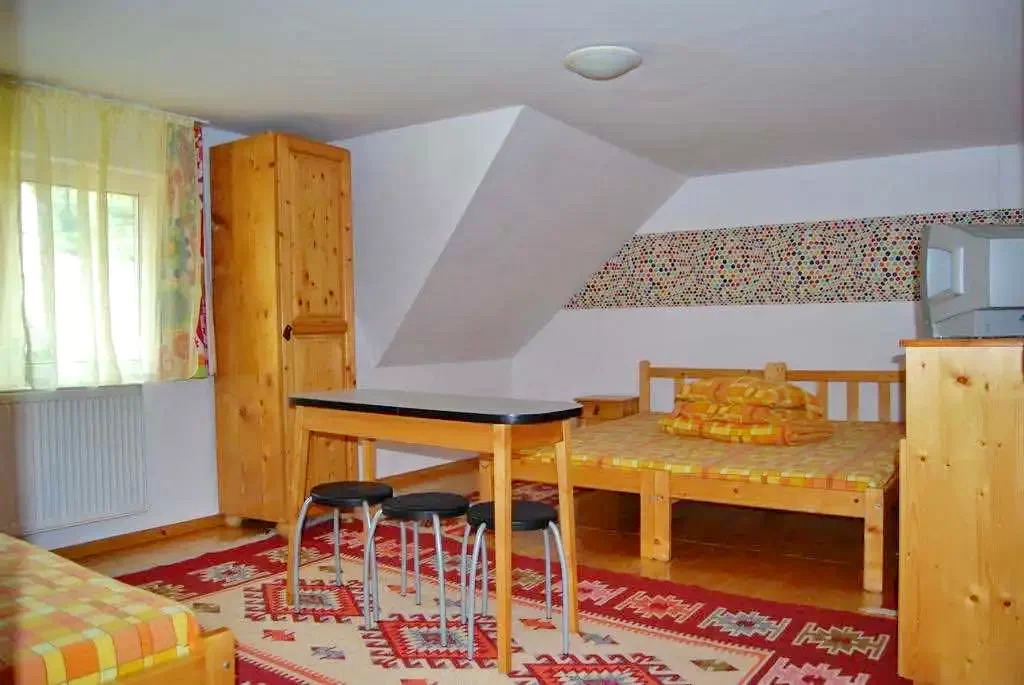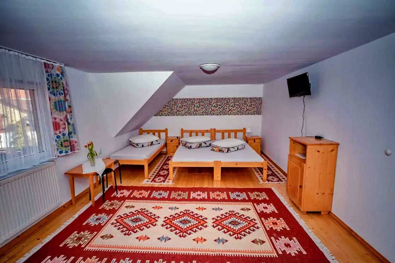 - Camera tripla pentru 3 persoane (1 pat matrimonial, 1 pat de o persoana, baie, bucătărie comuna).