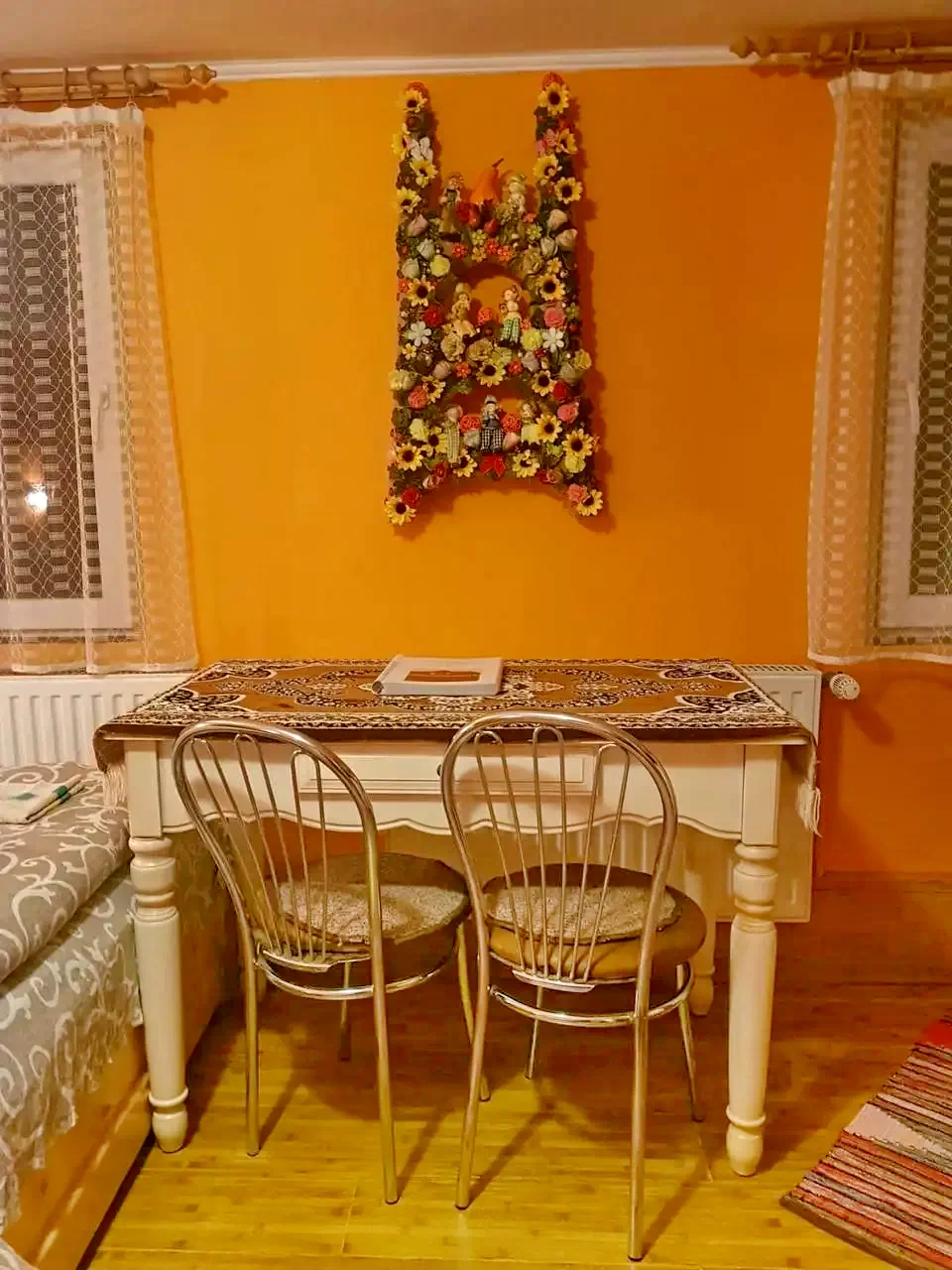 - Bucătărie-living utilată pentru 10 persoane, două camere matrimoniale separate și baie interioară. Apartamentul este complet separat și are intrare proprie.