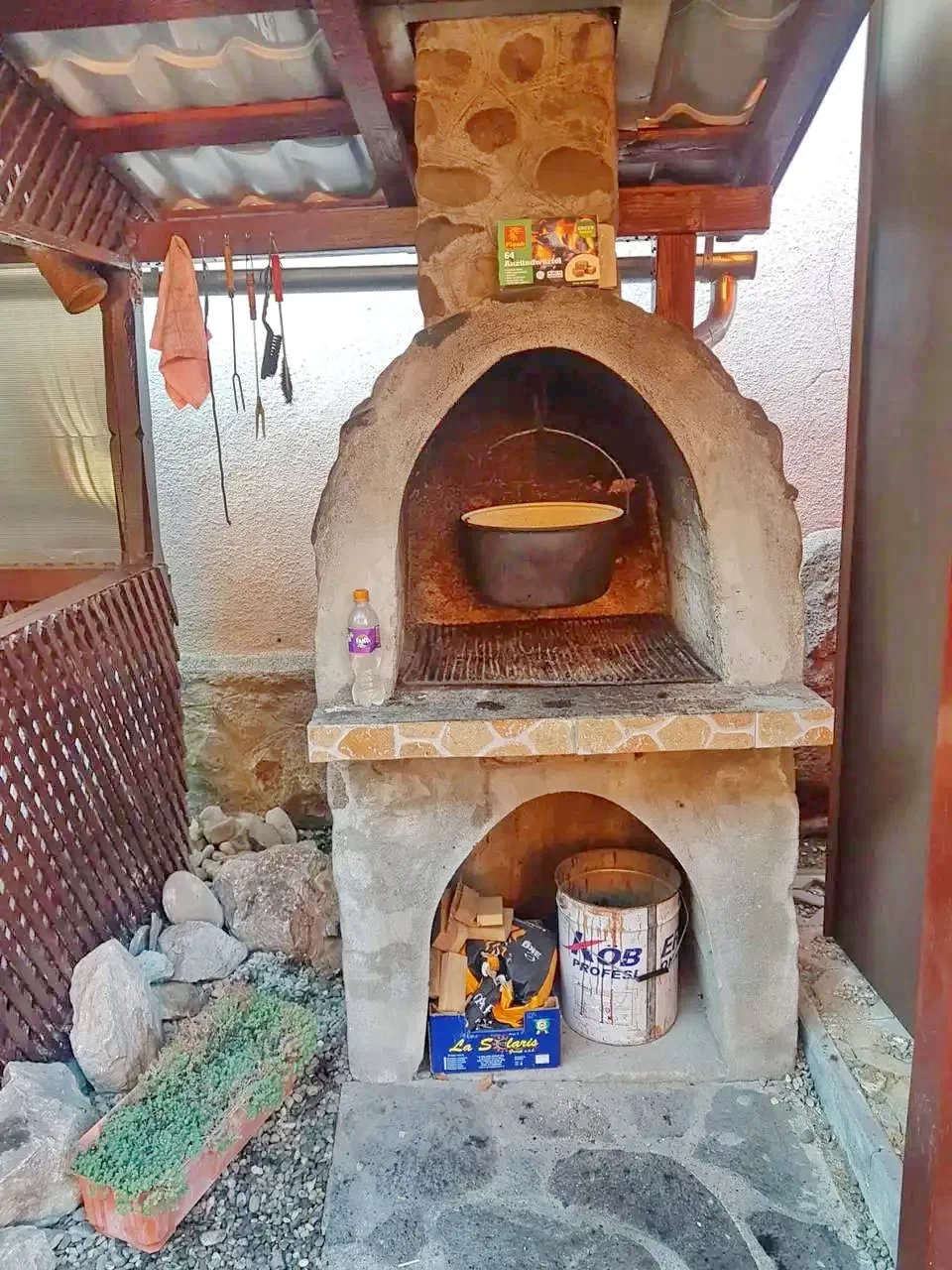 - Oaspeții pot folosi ciubărul, terasa acoperită, filegoria, precum și facilitățile pentru grătar, inclusiv cuptorul, grătarul și ceaunul.
