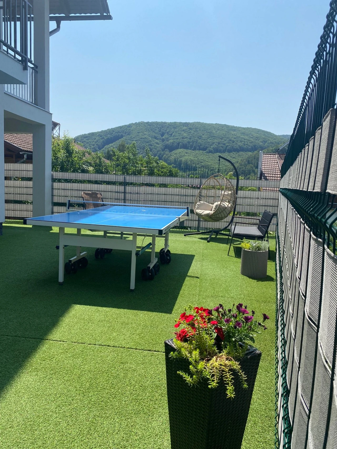 Grădină, curte și spațiu verde cu terase și vedere spre munți