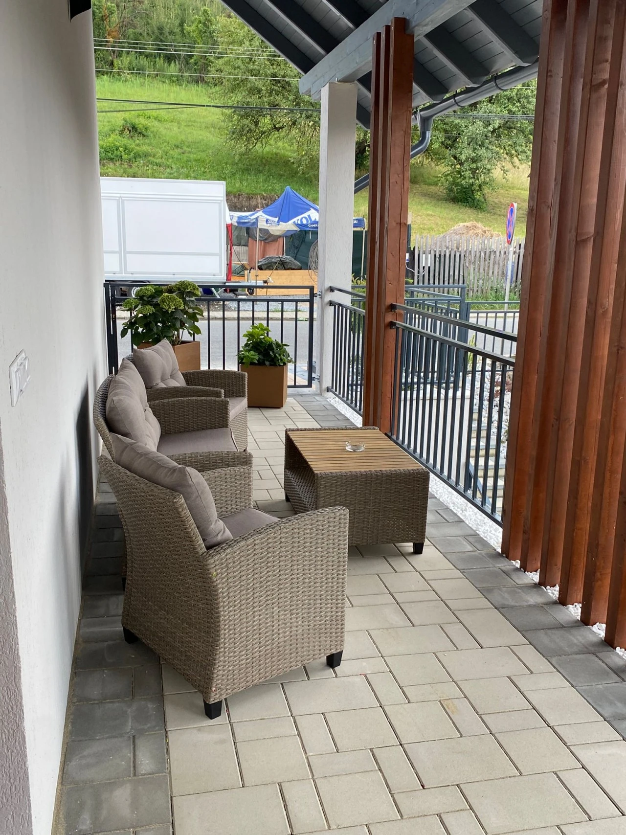 Zonă de grătar și picnic cu mobilier de exterior