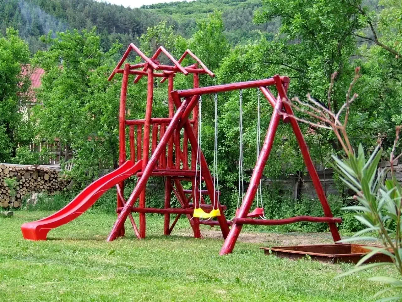 - Terenul mai mare de 2000 mp pe care este amplasata pensiunea asigura posibilitatea atat de parcare cat si o mare gradina amenajata pentru joaca, gratar, odihna.