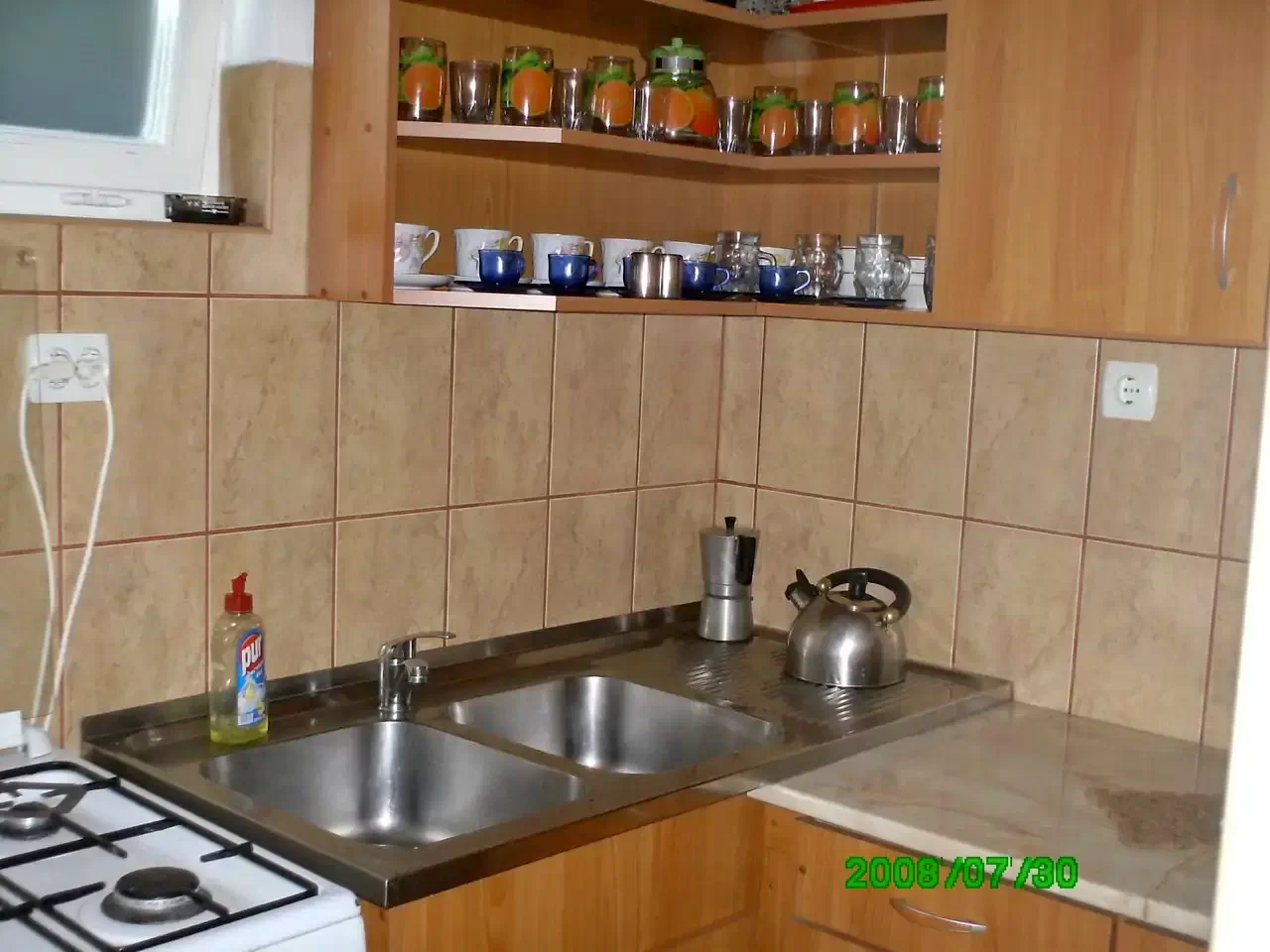 - Bucătărie (cuptor cu microunde, frigider, fierbător de apă, masă de sufragerie, ustensile de bucătărie)