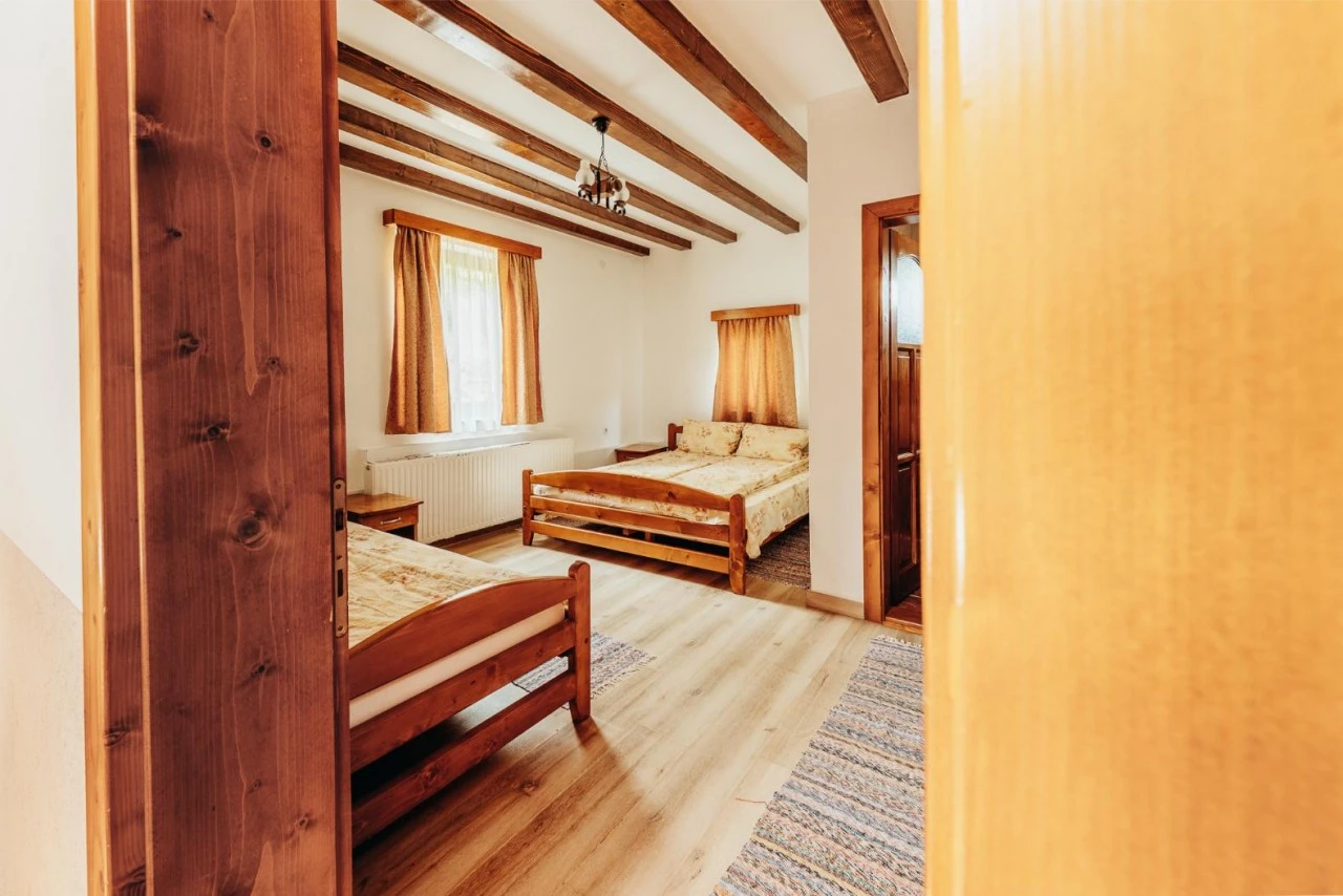 - 1 cameră dublă: suprafață de 12 m², cu 1 pat matrimonial (1,5 m x 1,9 m), baie proprie, duș, Wi-Fi și TV LED.
