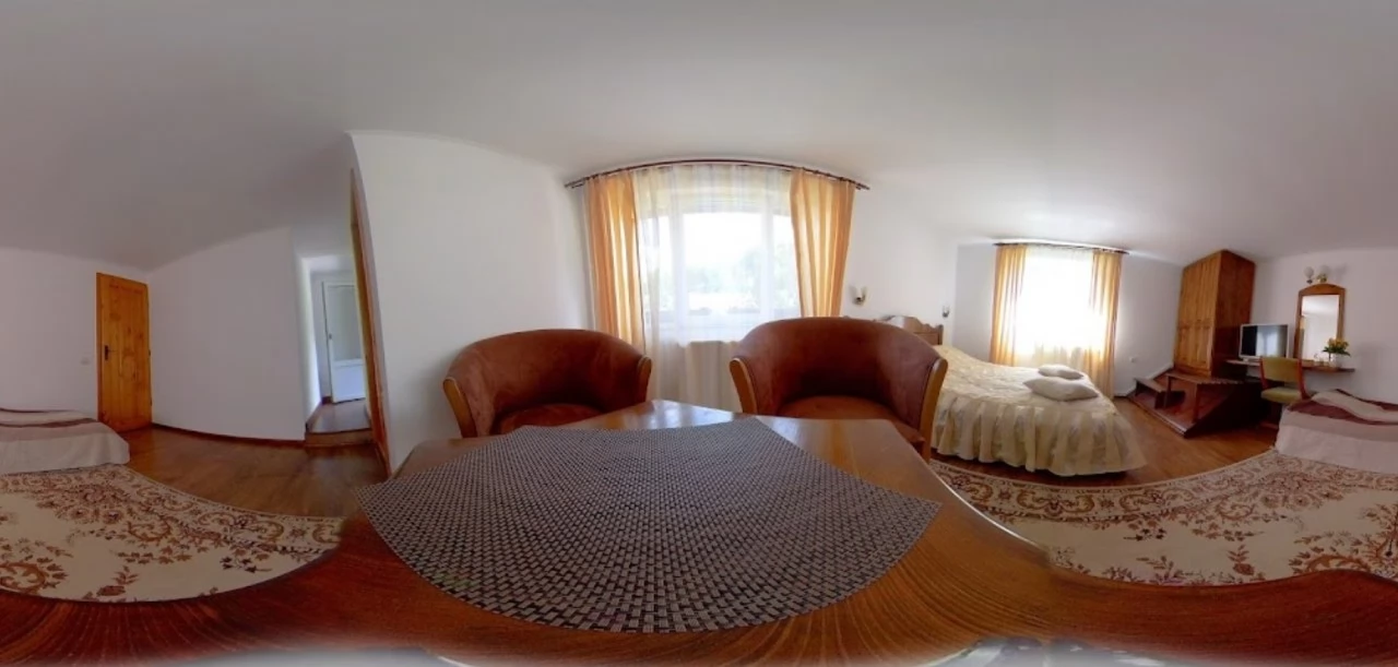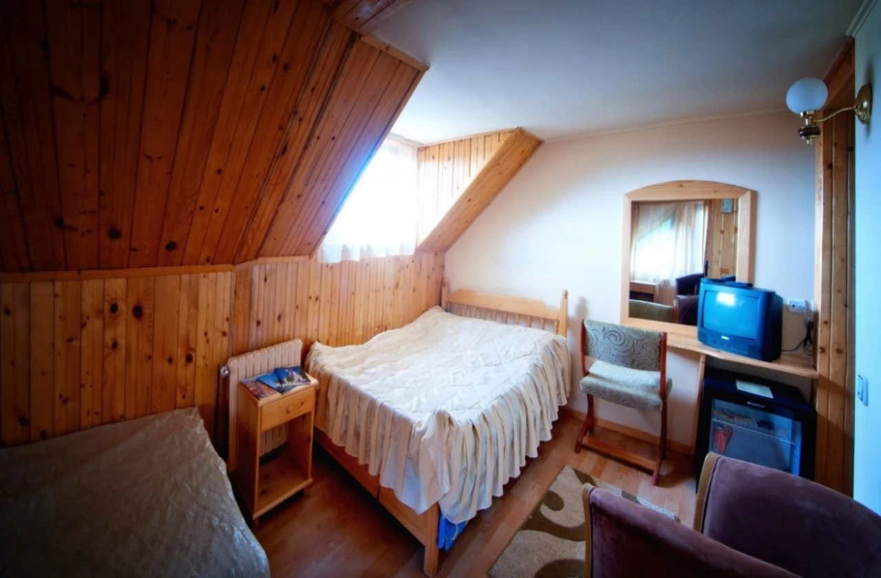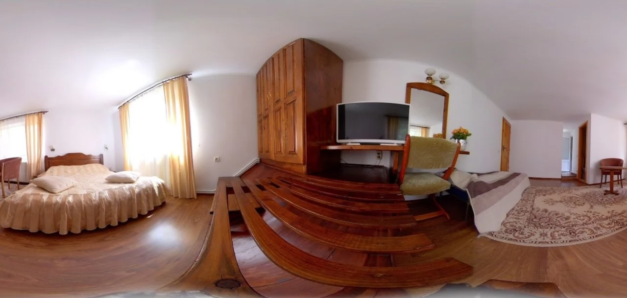 - Interiorul pensiunii este realizat în spiritul intimității: living cu TV și colț de relaxare confortabil, bucătărie echipată pentru mic dejun, săli de mese spațioase, internet wireless peste tot.
