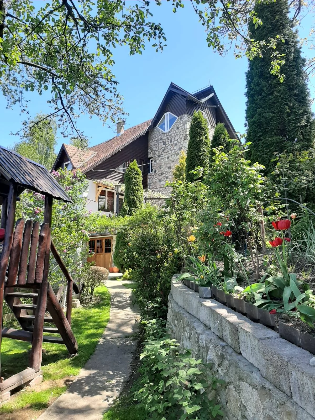 - Grădina mare și verde, împreună cu curtea, reprezintă paradisul relaxării: foișor, livadă, loc de joacă pentru copii, grătar și ceaun, plus parcare gratuită.