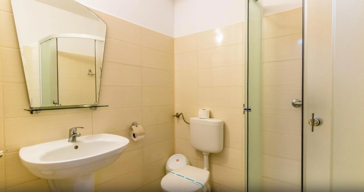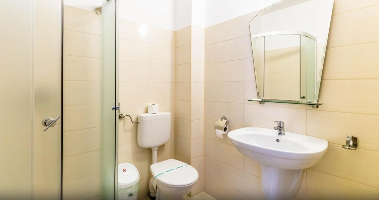 - Baie proprie cu duș sau cadă, uscător de păr, articole de toaletă gratuite