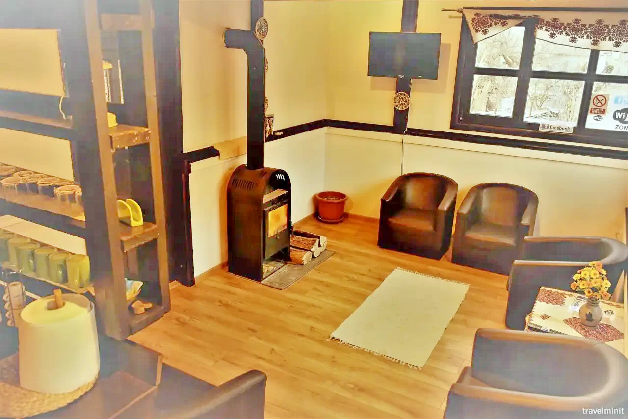 - Încălzirea este asigurată prin radiatoare electrice în camere și băi, iar în living o sobă oferă o atmosferă călduroasă. Apa caldă este furnizată prin boiler electric.