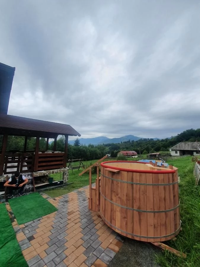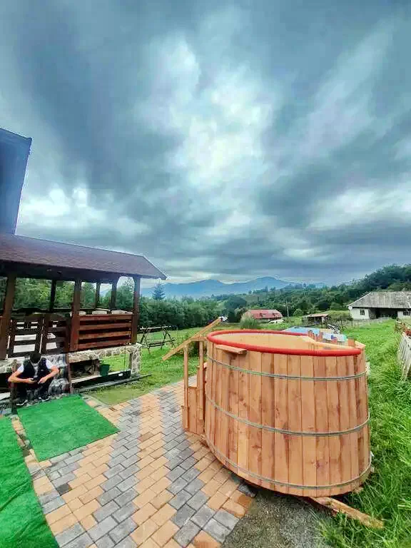 - Pe timpul verii, este disponibilă o mini piscină exterioară, iar pe tot parcursul anului, un ciubăr cu apă calda.