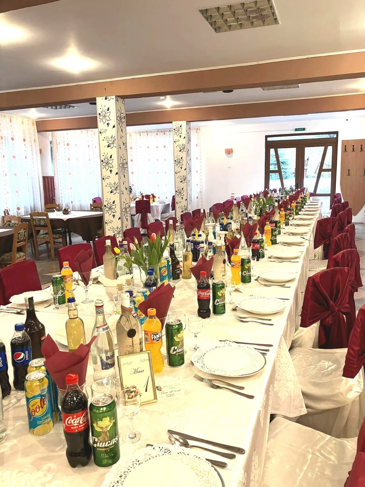 Restaurantul pensiunii are o capacitate de 120 de locuri si poate sa gazduiasca evenimente precum: team building, simpozioane, nunti, botezuri, aniversari, precum si orice alt tip de petreceri.