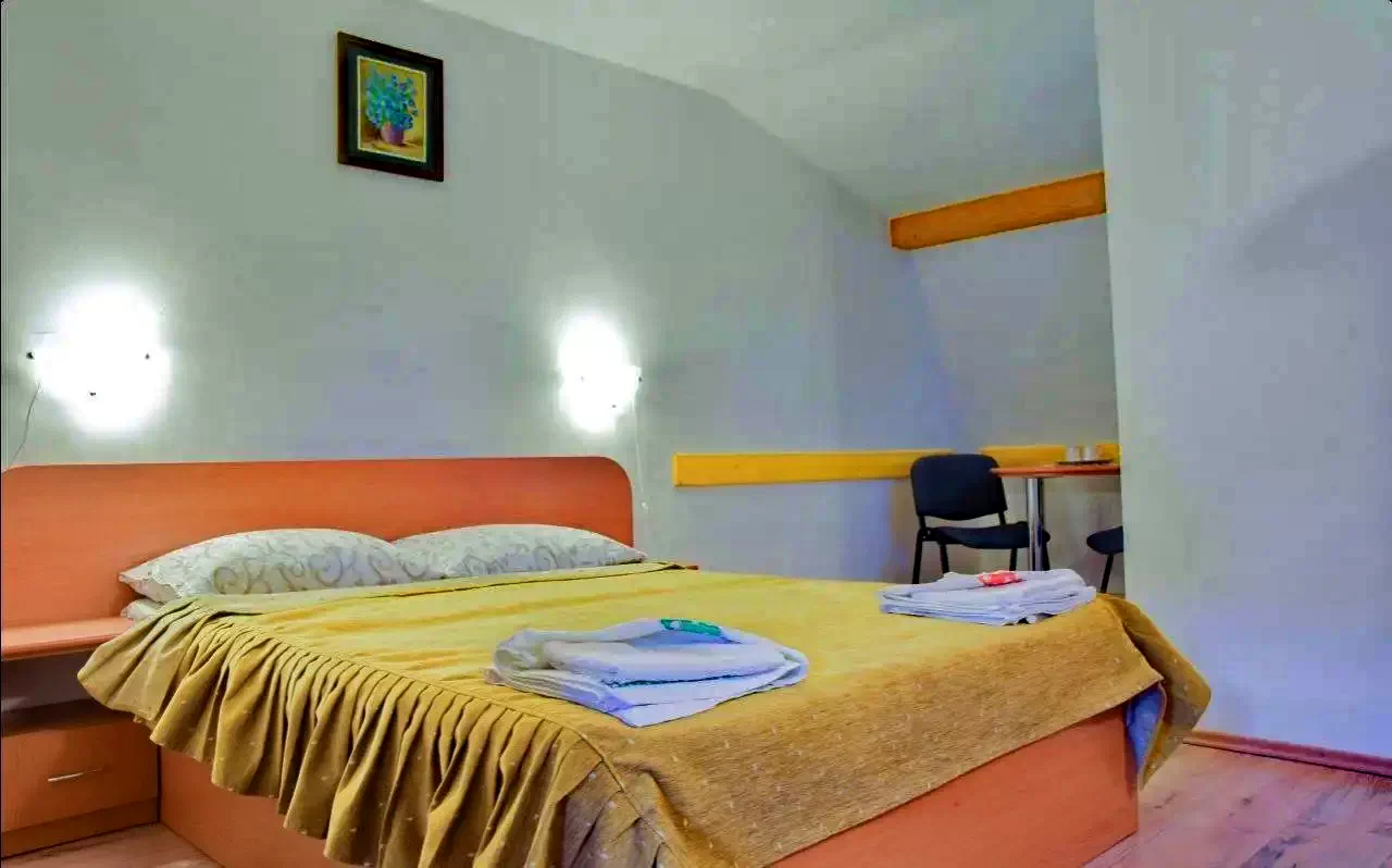 * Fiecare camera are baie proprie, SAT-TV, 2 prosoape albe/persoana, săpun gel, 2-3 pahare, masa, scaune, dulap cu umerașe, oglinda, cuier, si internet W-IFI.