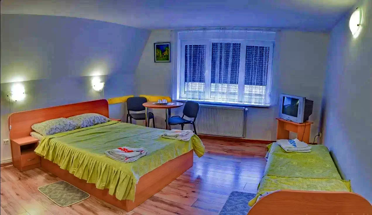 - Camerele de trei stele au baie proprie, SAT-TV, 2 prosoape albe/persoana, săpun gel, 2-3 pahare, masa, scaune, dulap cu umerașe, oglinda, cuier, si internet W-IFI.