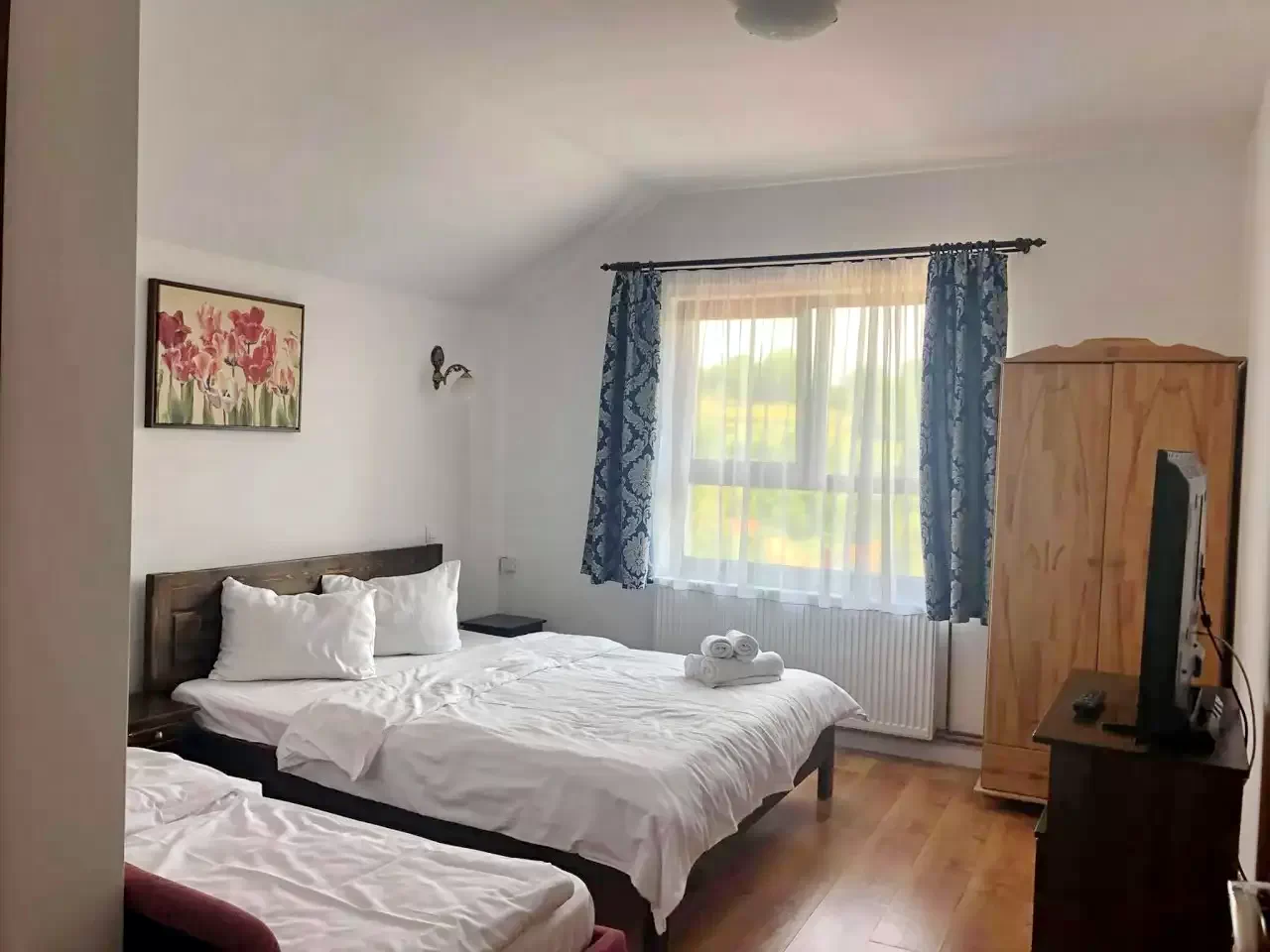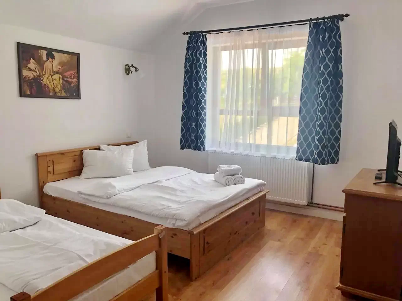 - Fiecare camera cu pat matrimonial si pat simplu