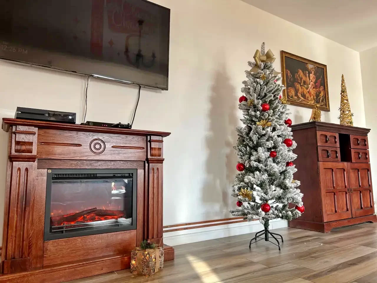 - Living comun cu șemineu și TV cu cablu