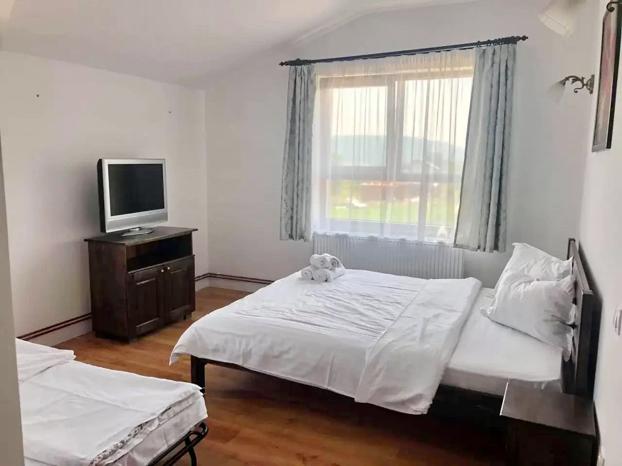 - Pensiunea dispune de 5 camere spațioase, fiecare dotată cu pat dublu matrimonial și si un pat simplu.