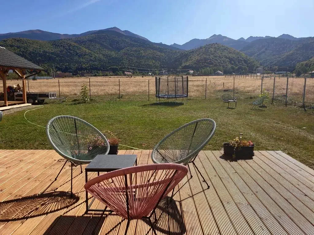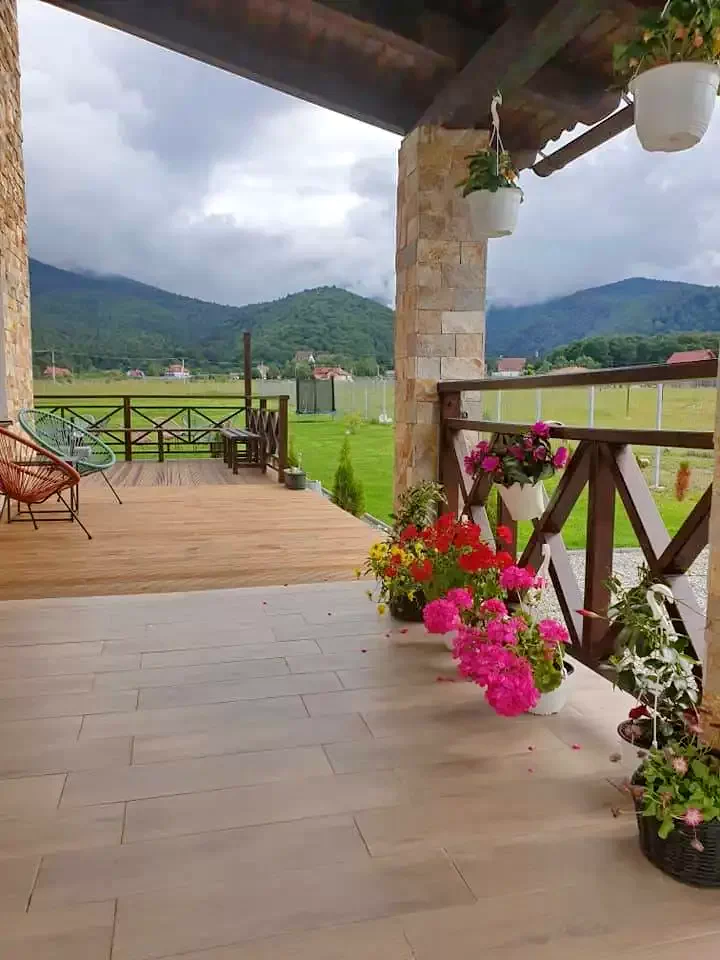Cazare Brașov Stațiunea Climaterica Sambata de Sus Pensiune**** | Privelistea asupra muntilor Fagarasi, living, gradina, foisor, semineu, grill | 300m Partia de ski Motul Dragusului, 27km Fagaras, 60 km Lacul Balea