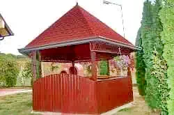 Curte: Grădină amenajată cu foișor și grătar pentru mese în aer liber.