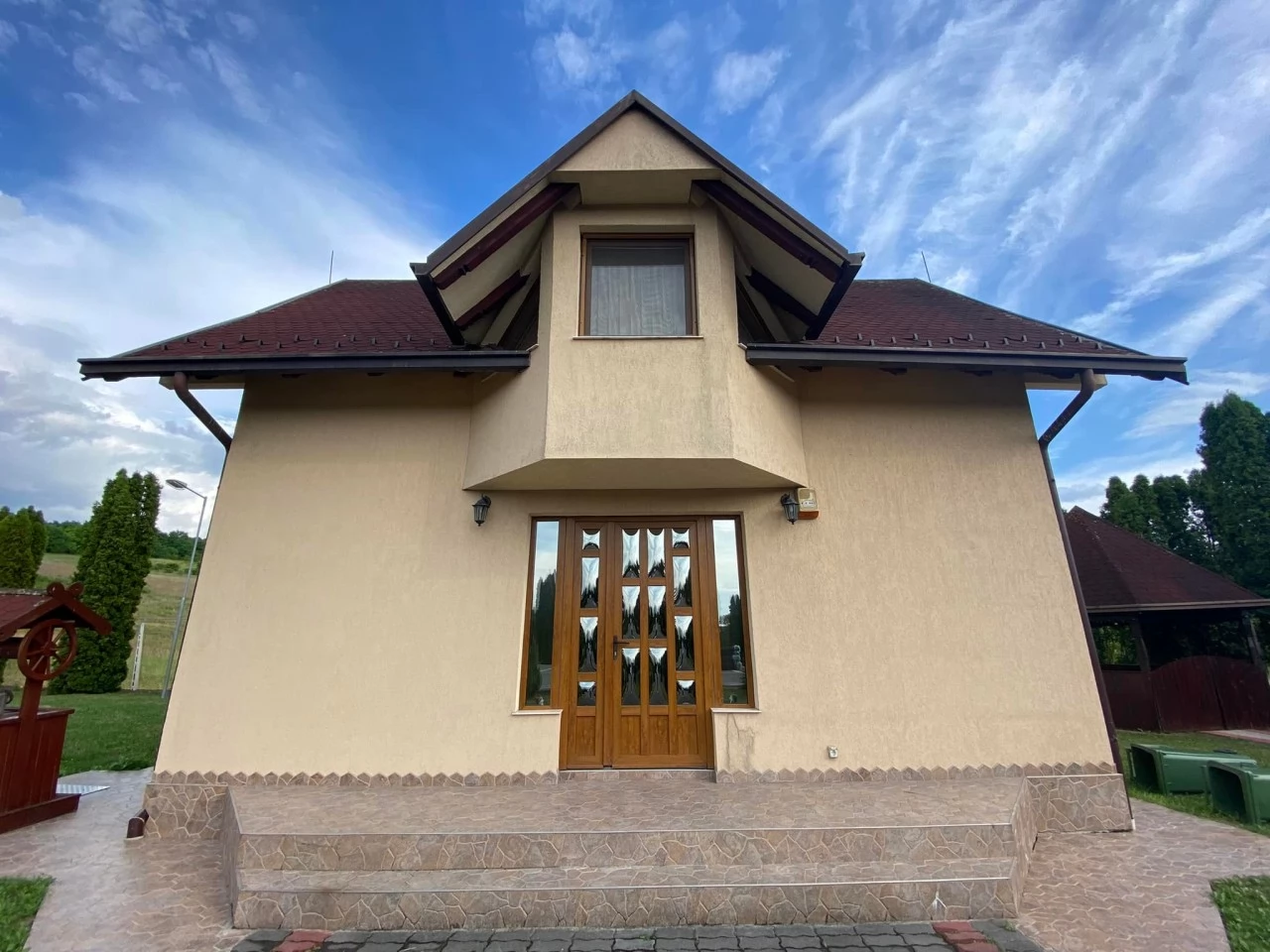 Spațiu exterior: Curte amenajată cu foișor și grătar.