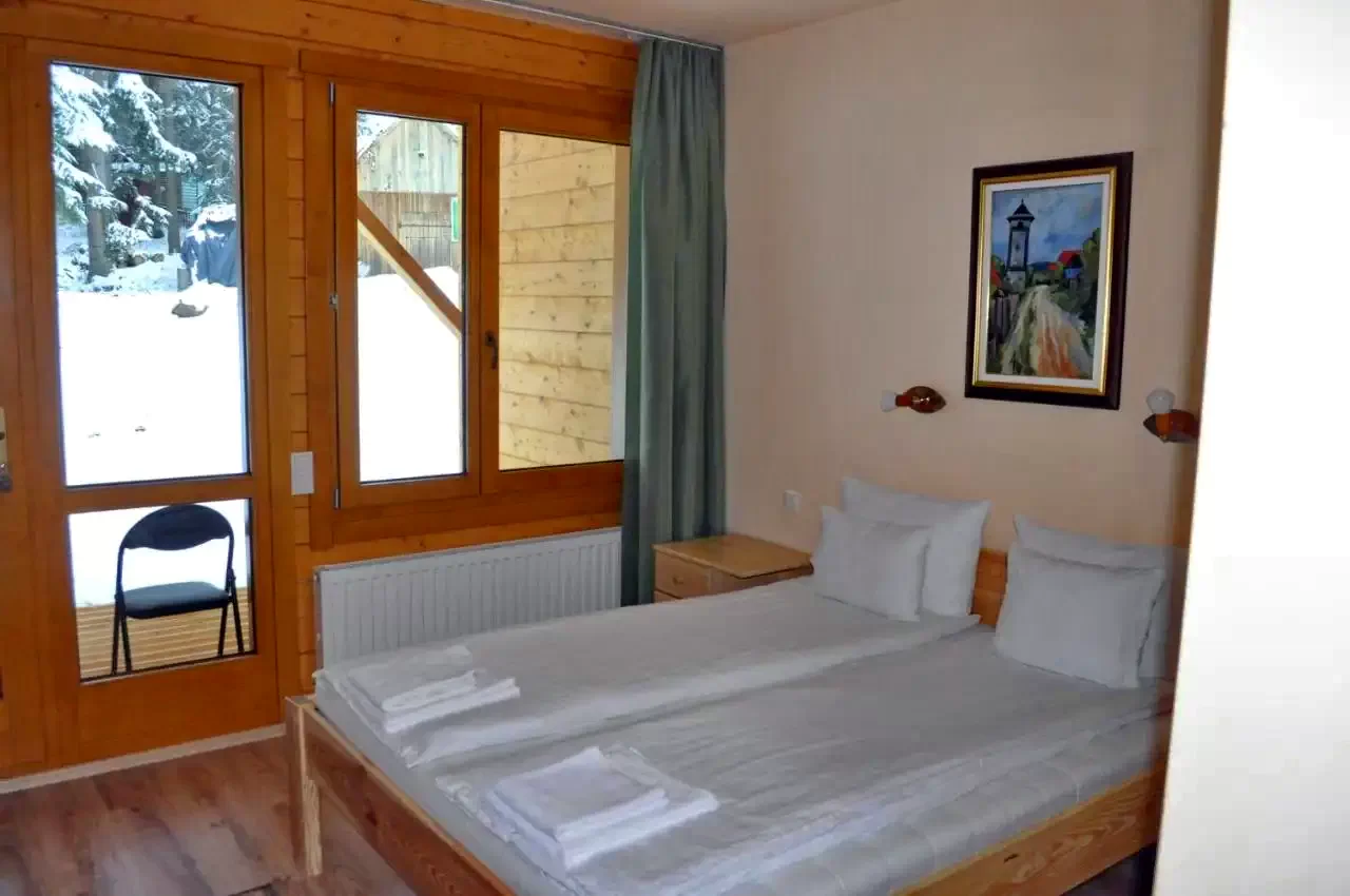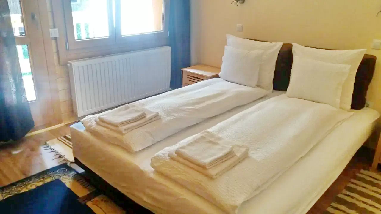 - Pensiunea are șase camere studio disponibile pentru două persoane: cu un pat francez sau chiar două paturi de o persoană. Camerele de la etaj pot fi suplimentate cu un pat suplimentar.