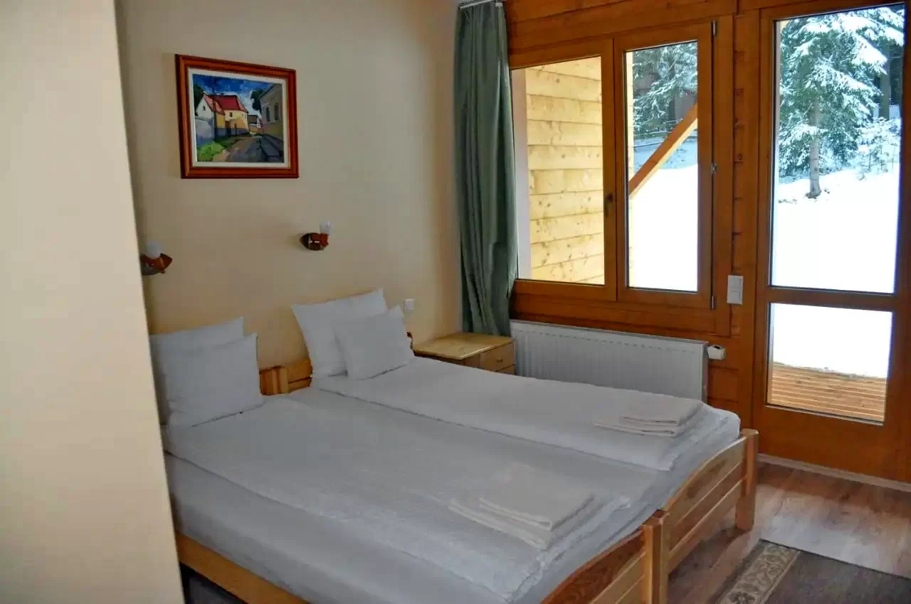Camera 1. : Pat matrimonial si pat suplimentar pentru 2 persoane, chicineta, terasa, baie cu dus si WC;