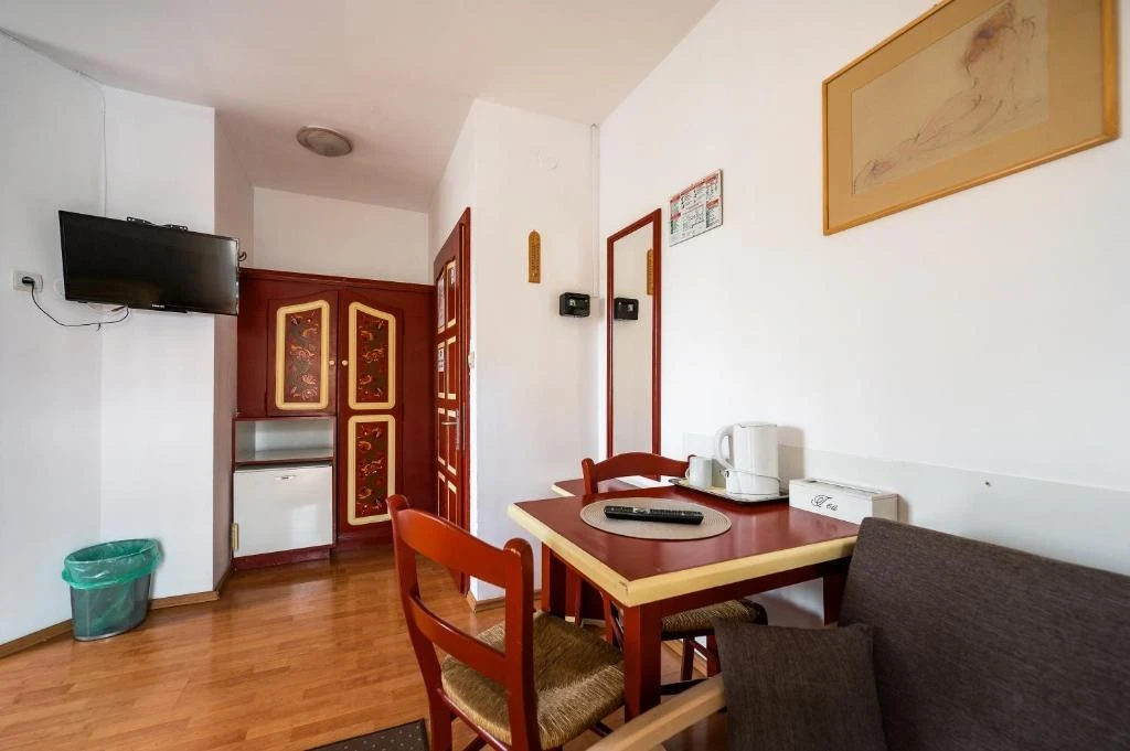 Parter: Camere duble și triple, precum și apartamente spațioase pentru familii sau grupuri mai mari, cu accesibilitate pentru persoane cu dizabilități. Camerele sunt dotate cu băi private și echipamente moderne, cu acces direct la grădina hotelului.