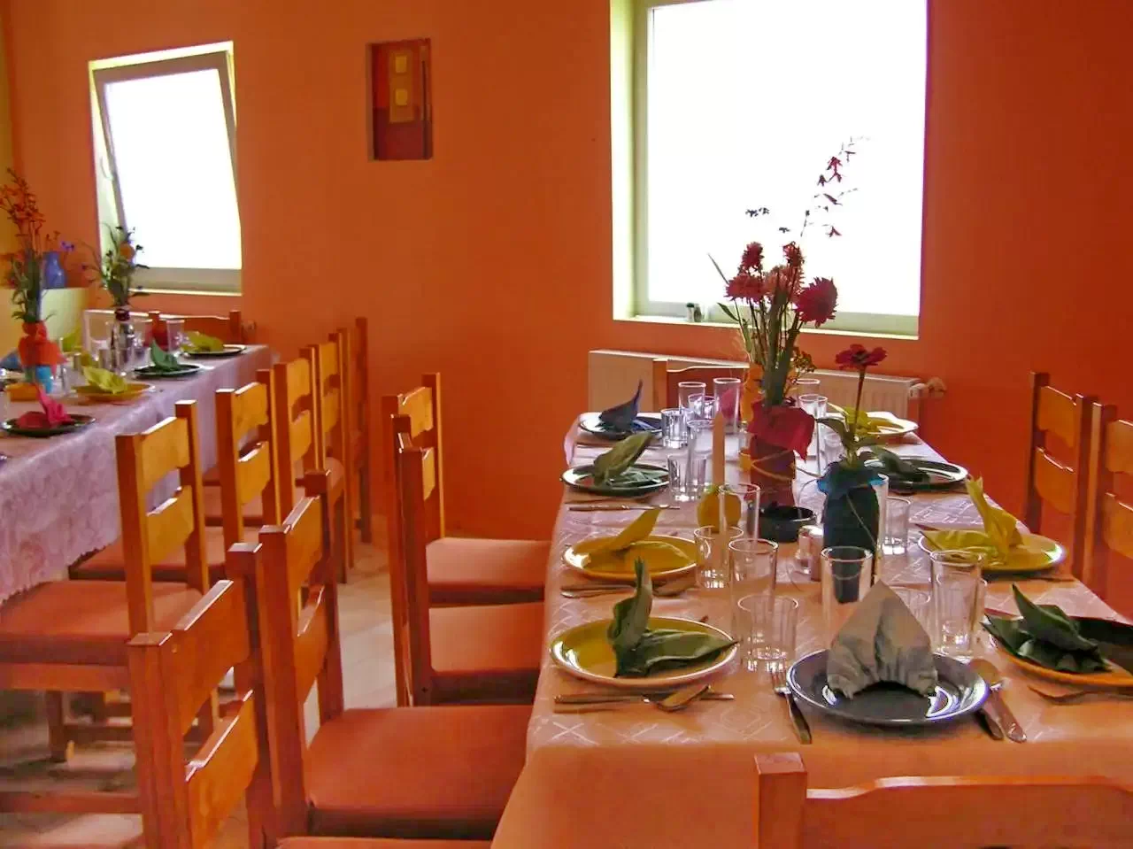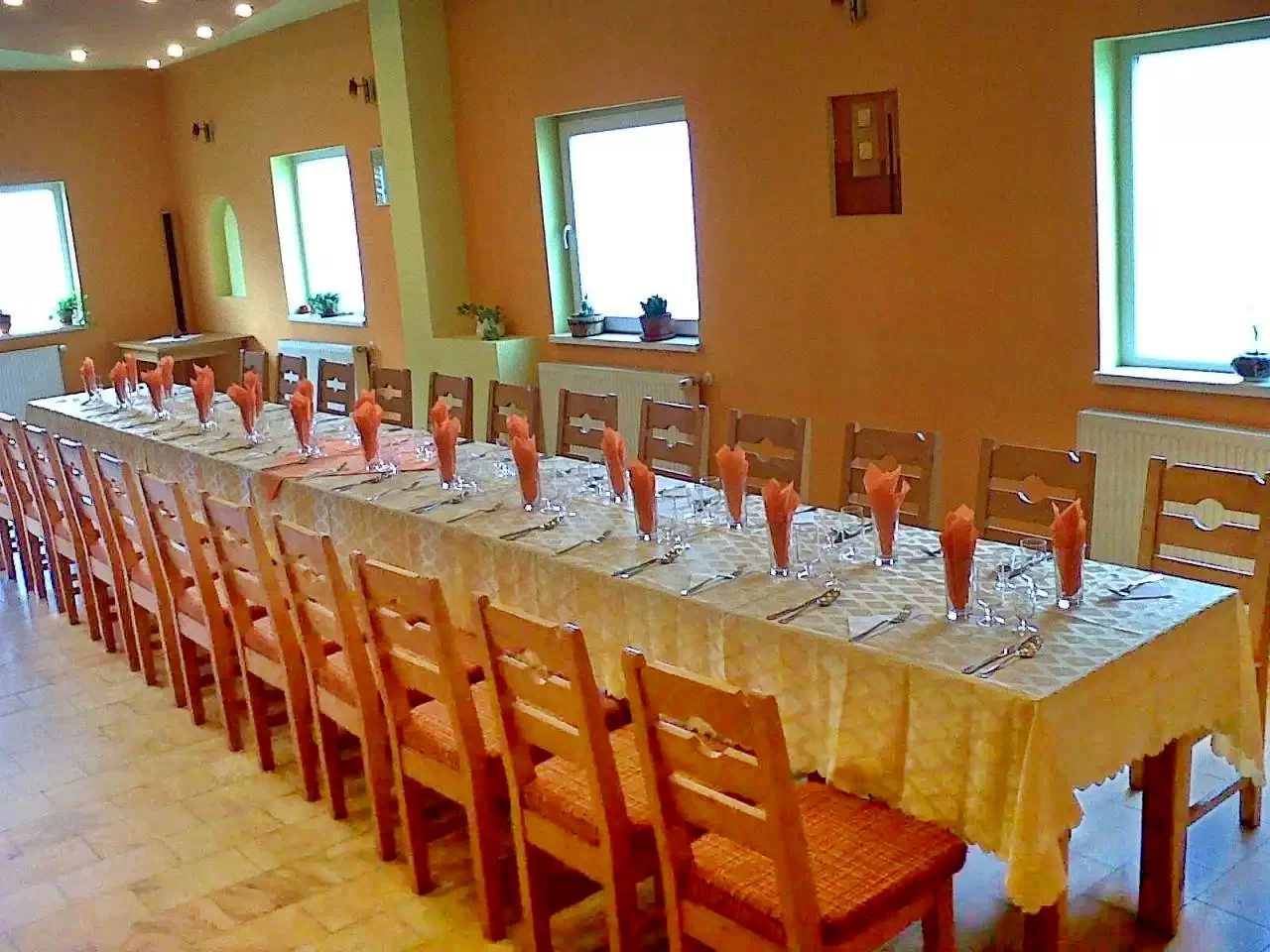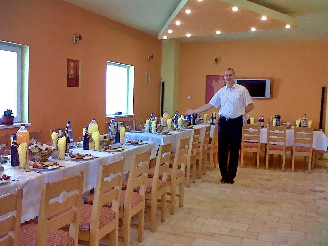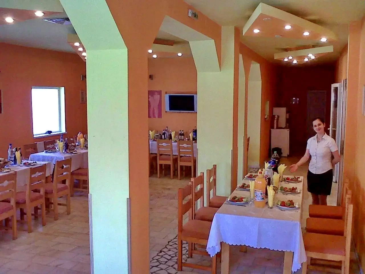 La parterul cladirii moderne se afla un restaurant cu 60 de locuri, deschis pe tot parcursul anului, unde se servesc preparate secuiesti si ardelenesti. Oaspetii pot savura mancaruri traditionale pregatite din ingrediente locale, supe ca la mama acasa, bunatati coapte in cuptor si specialitati din zona.