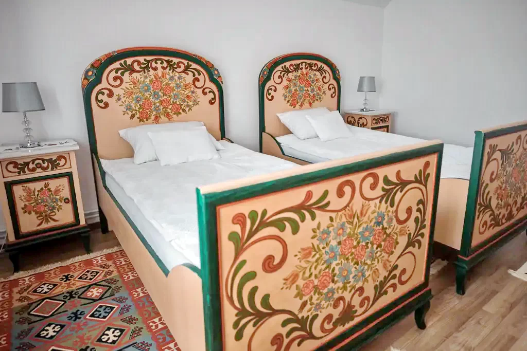 - 2 camere duble (2 paturi de o persoană, care se pot alătura pentru a forma un pat de 100-200 cm lățime)