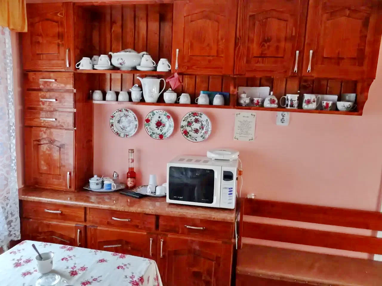 - Pensiunea dispune de o bucătărie complet utilată, oferind posibilitatea de autogospodărire pentru oaspeți.