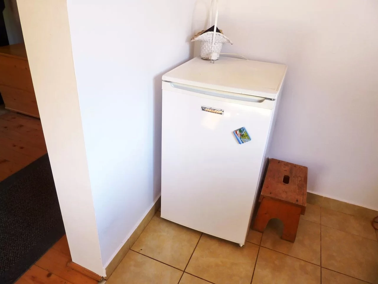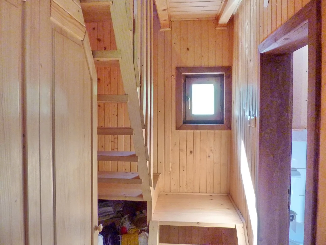 - La parter se află un living-sala de mese cu o canapea extensibilă pentru 2 persoane, o bucătărie modernă, o baie (cu duș, WC și chiuvetă) și o cameră cu pat dublu (2 persoane).