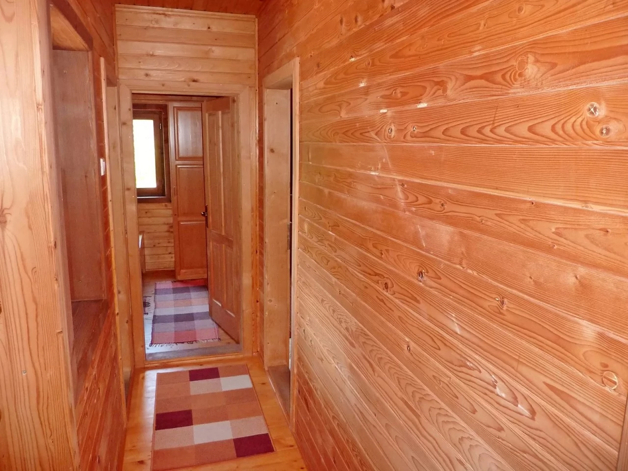 - La etaj sunt trei camere și o toaletă (WC și chiuvetă): prima cameră cu un pat dublu (2 persoane), a doua cameră cu un pat dublu și un pat single (3 persoane), a treia cameră cu două paturi single (2 persoane). Camerele de la etaj au acces la un mic balcon. Fiecare cameră este dotată cu televizor și antenă parabolică.