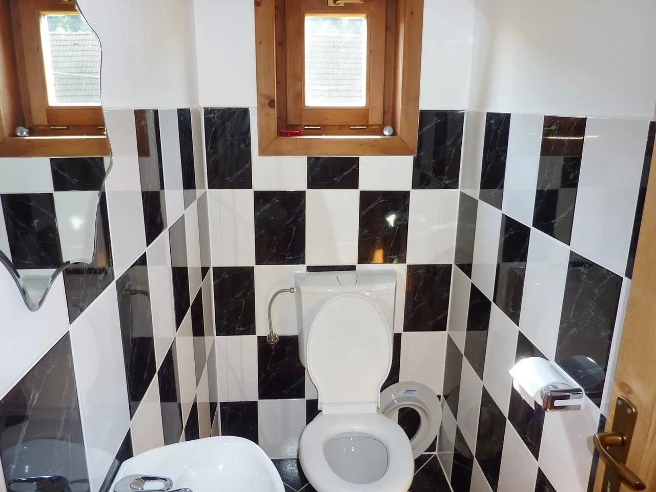 Băi: Una cu duș, WC și chiuvetă; una cu WC și chiuvetă.