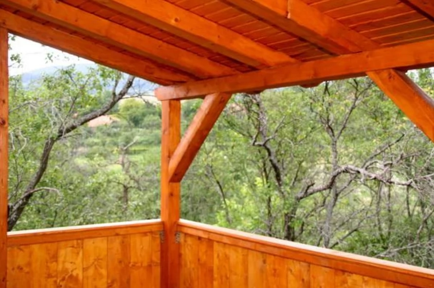 - În spatele casei, de pe balcon, se vede o livadă imensă, din care cântecul păsărilor pe tot parcursul zilei este asigurat de sturzi, vâlci, rutișori, precum și numeroasele specii de păsări care vizitează aici, ispitind locuitorii casei să mergi in drumeții...