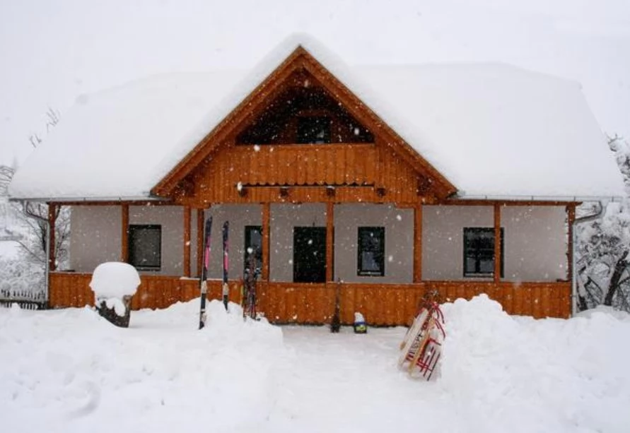 - La parterul pensiunii se afla o bucătărie, o sala de mese, un dormitor, o baie (cu dus) si un balcon mare. Încălzirea si apa calda sunt asigurate de o centrală pe bază de lemne. Bucătăria este complet utilată.