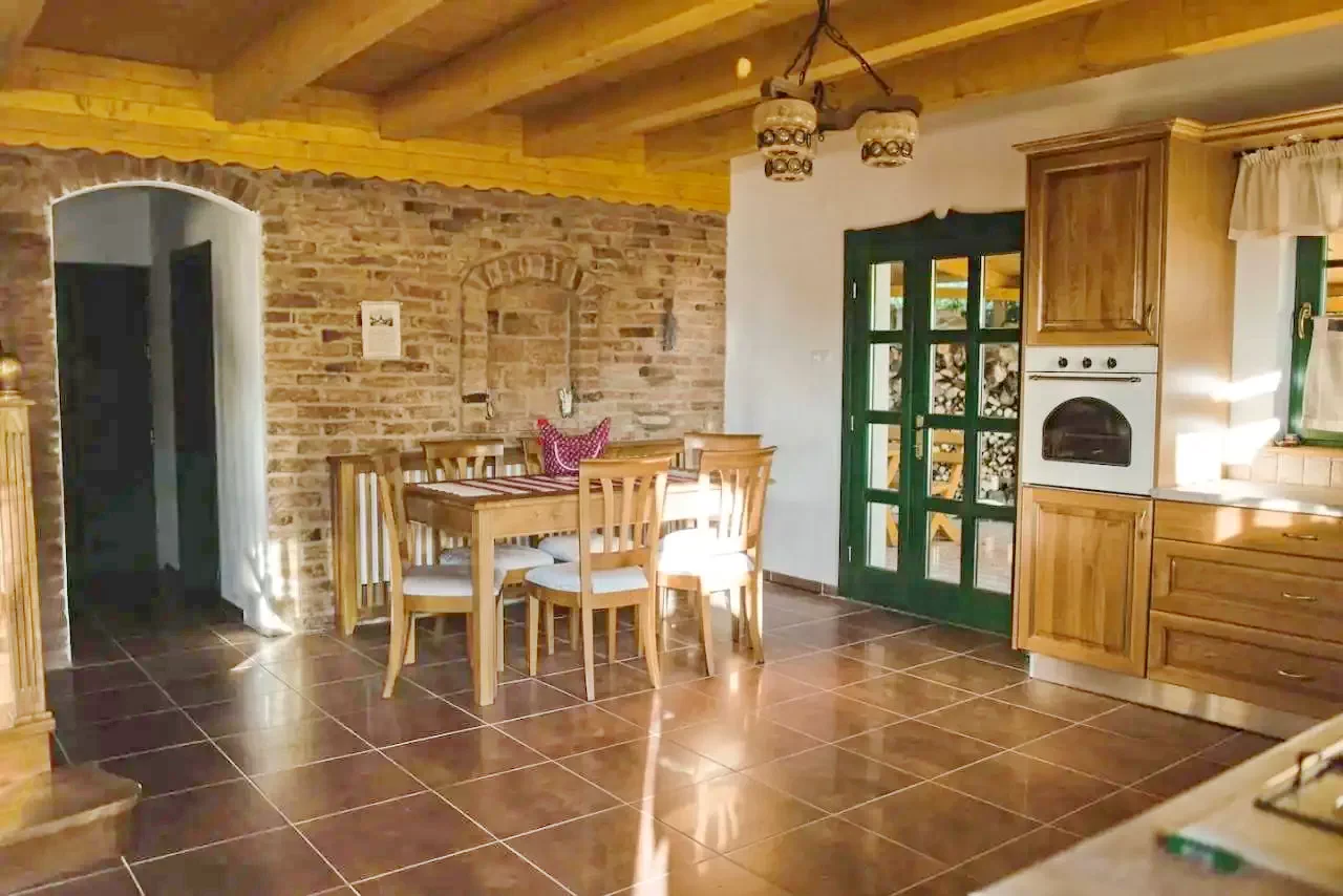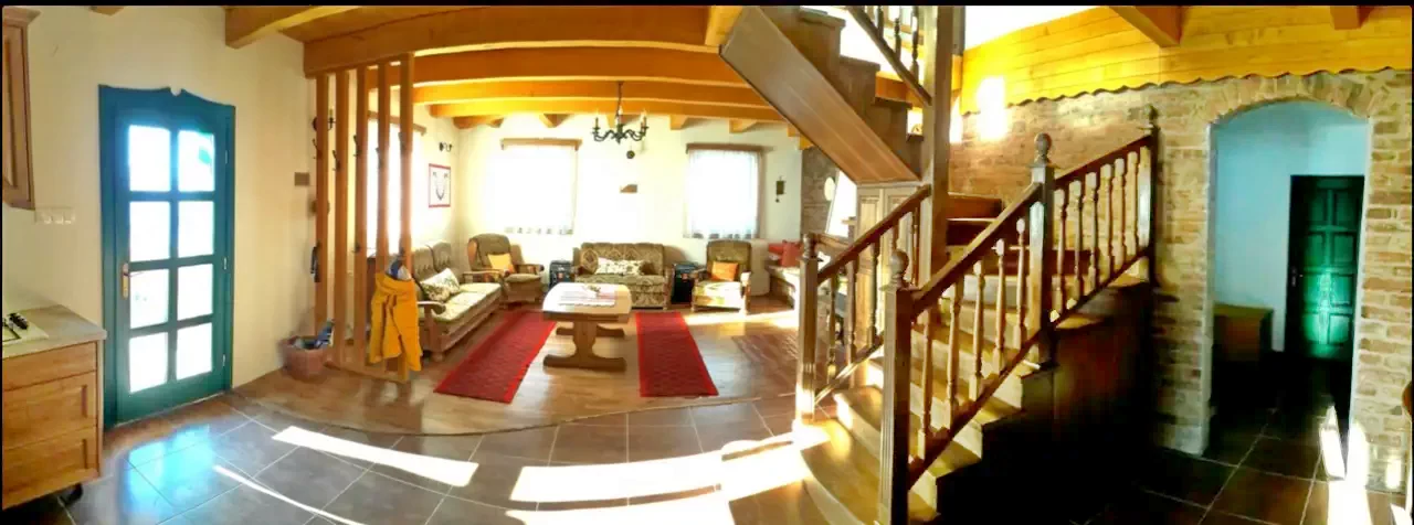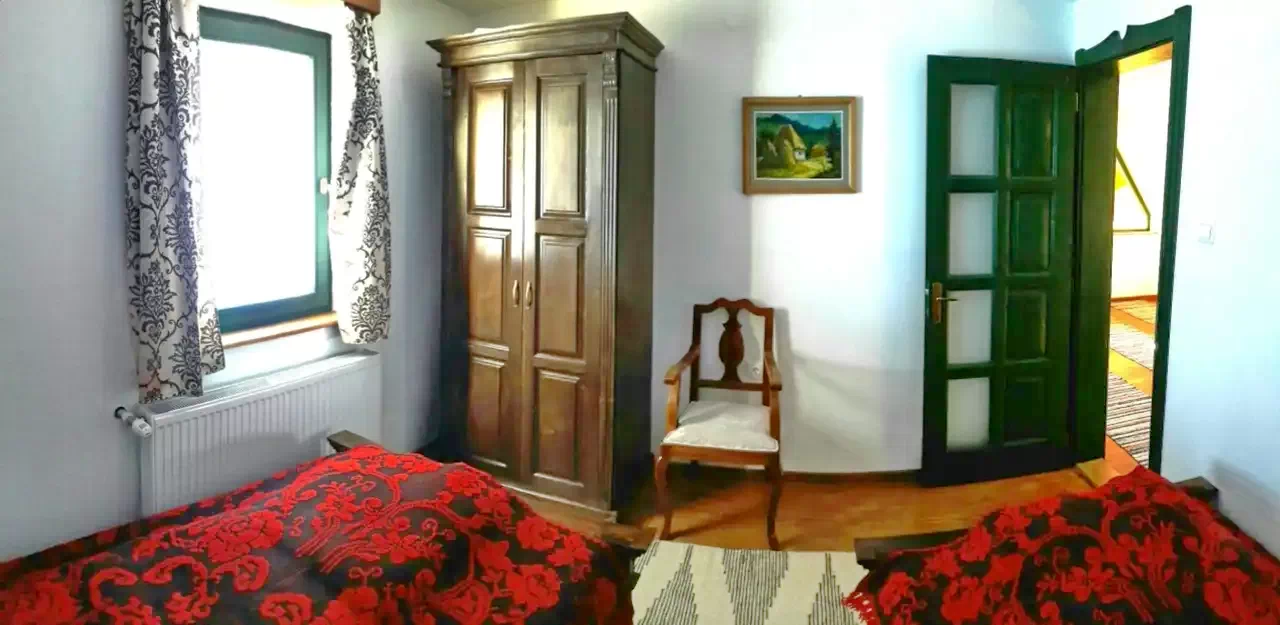 - Casa de oaspeți, cu un design rustic, este potrivită pentru 8-10 persoane, oferind patru dormitoare confortabile și două băi moderne.